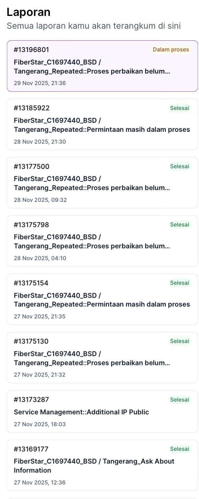 Gangguan jaringan sudah saya laporkan berulang kali sejak 26 November 2025.
