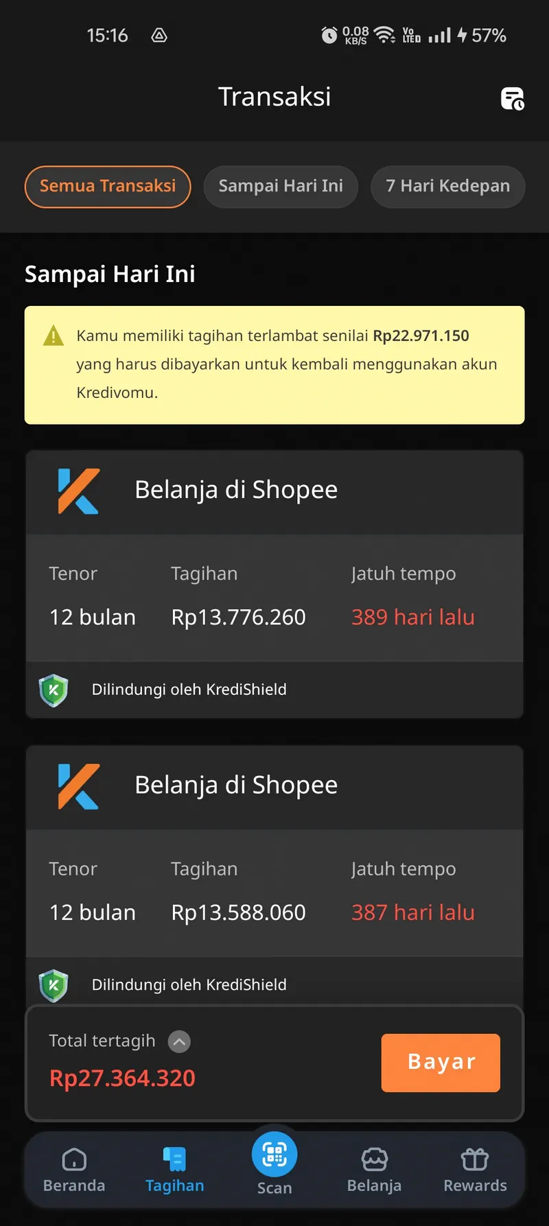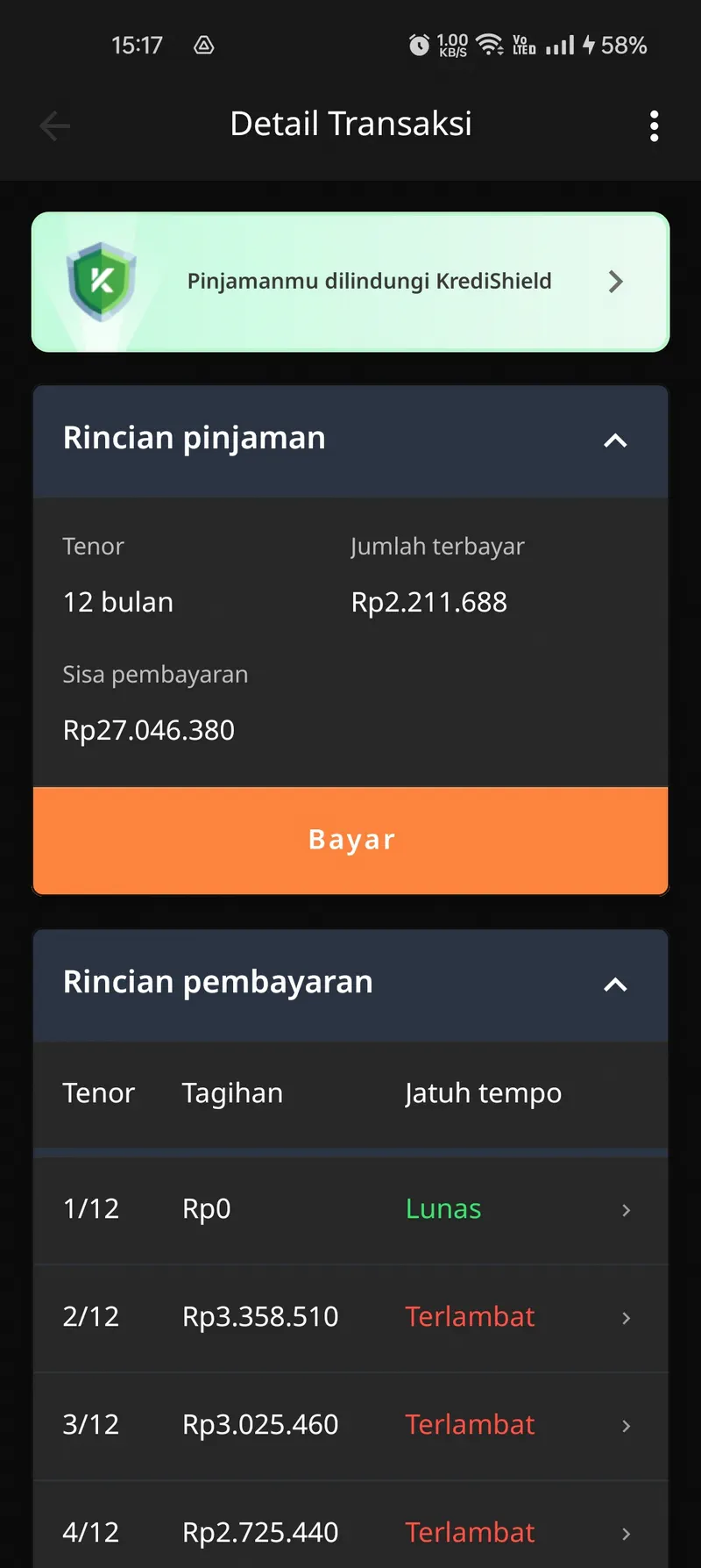 (Dapat dilihat bahwa meskipun saya sudah mencicil lebih dari Rp17 juta, tagihan saat ini justru membengkak melebihi pinjaman pokok awal akibat denda dan bunga yang terus berjalan selama saya mengalami kesulitan finansial).