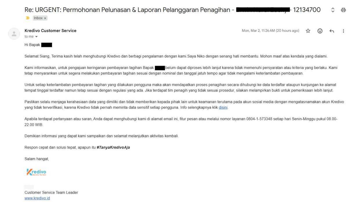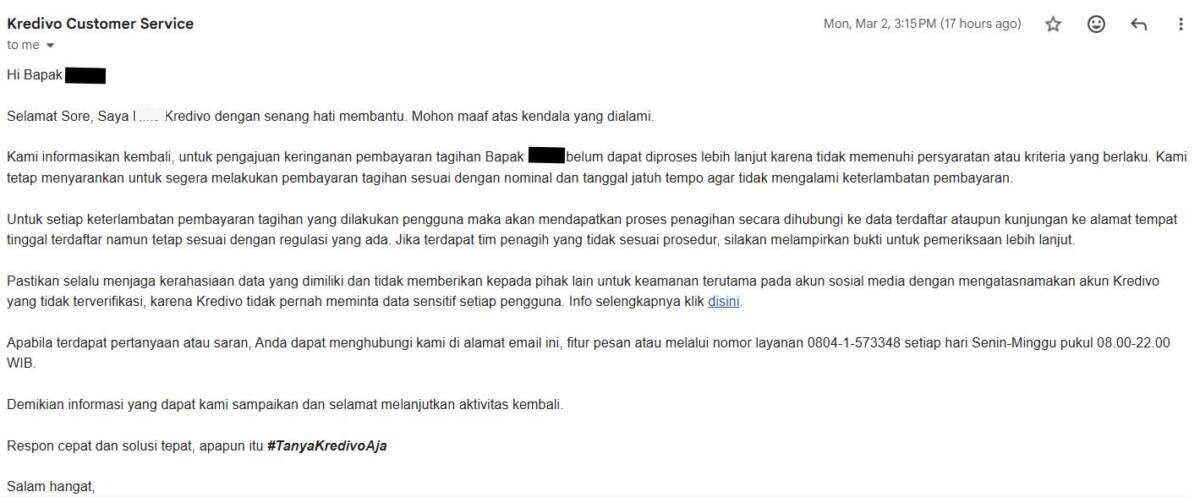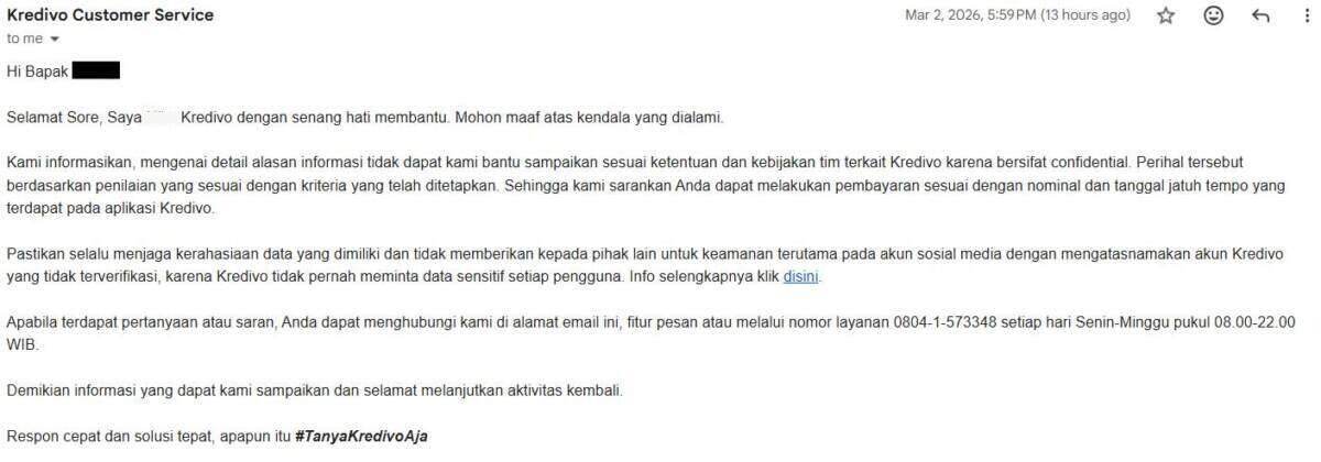 Update (26 Maret 2026): Surat pembaca di atas kembali mendapat tanggapan dari pihak Kredivo sebagai berikut: