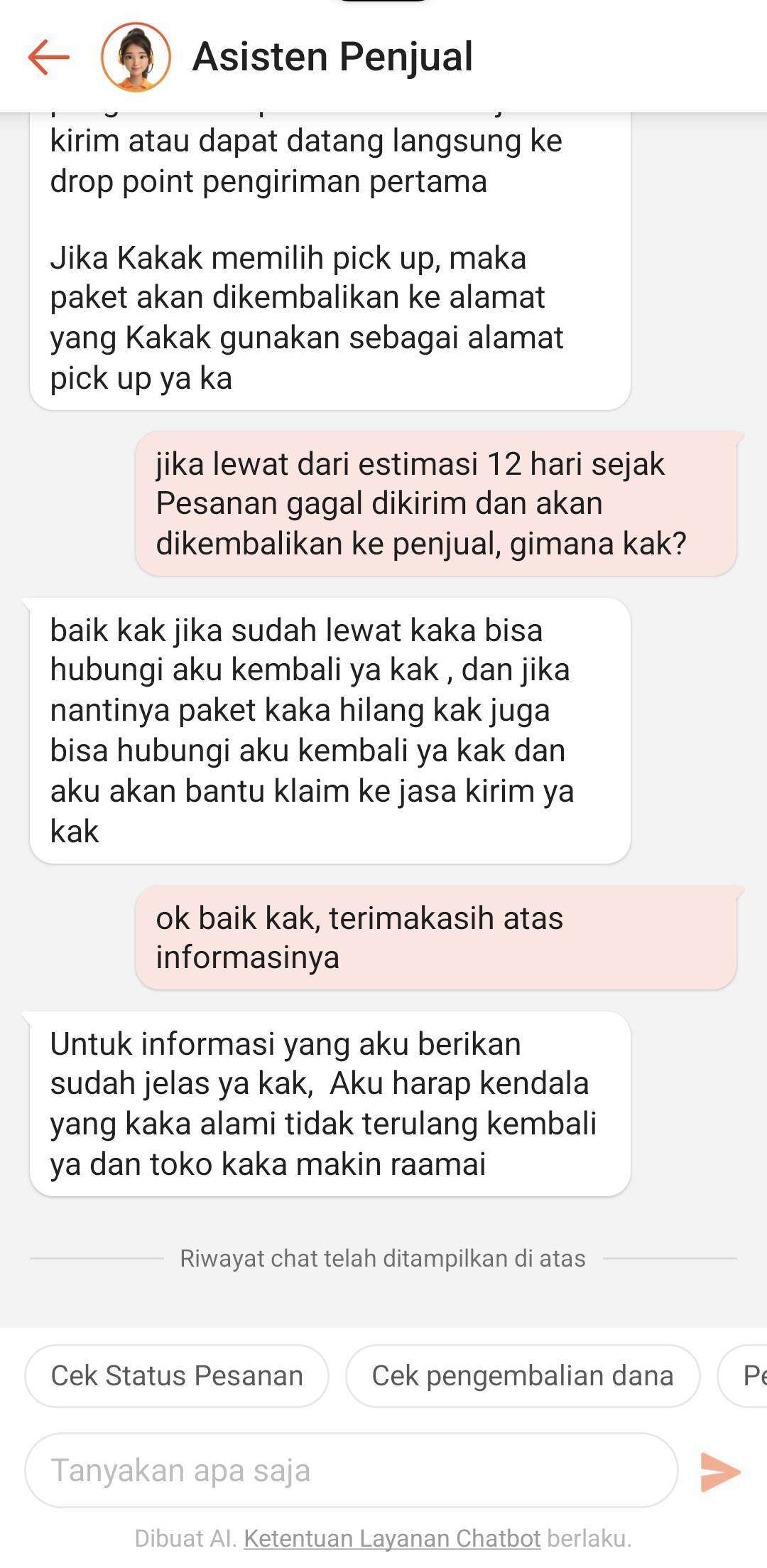 Jika memang paket saya hilang, tolong segera diinformasikan agar saya bisa klaim asuransi di Shopee. Jika memang paket saya masih dalam pengiriman untuk diretur, berikan saya bukti minimal update tracking agar saya bisa tahu status paket saya di mana.