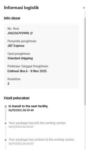 Ekspedisi dan resi: J&T Express – JX6236792998