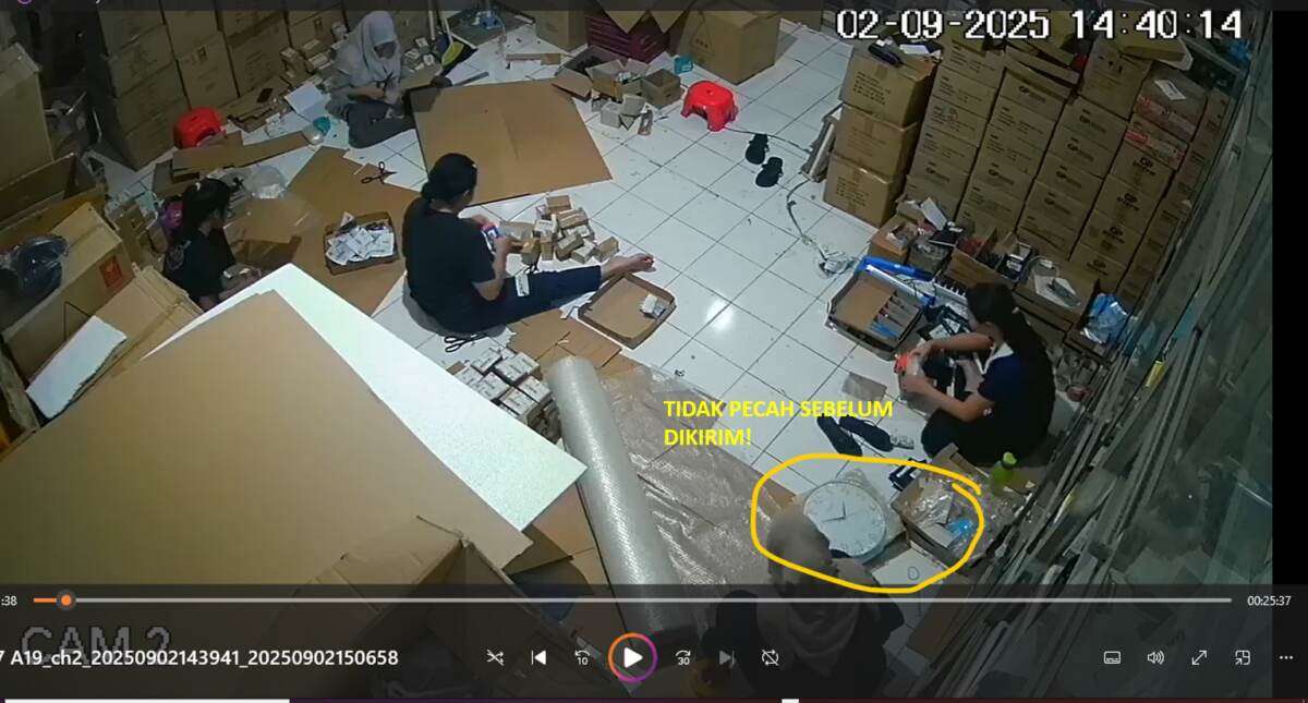 - Berikut CCTV video bukti pengemasan sekaligus bukti bahwa barang sebelum dikirim tidak ada yang pecah: