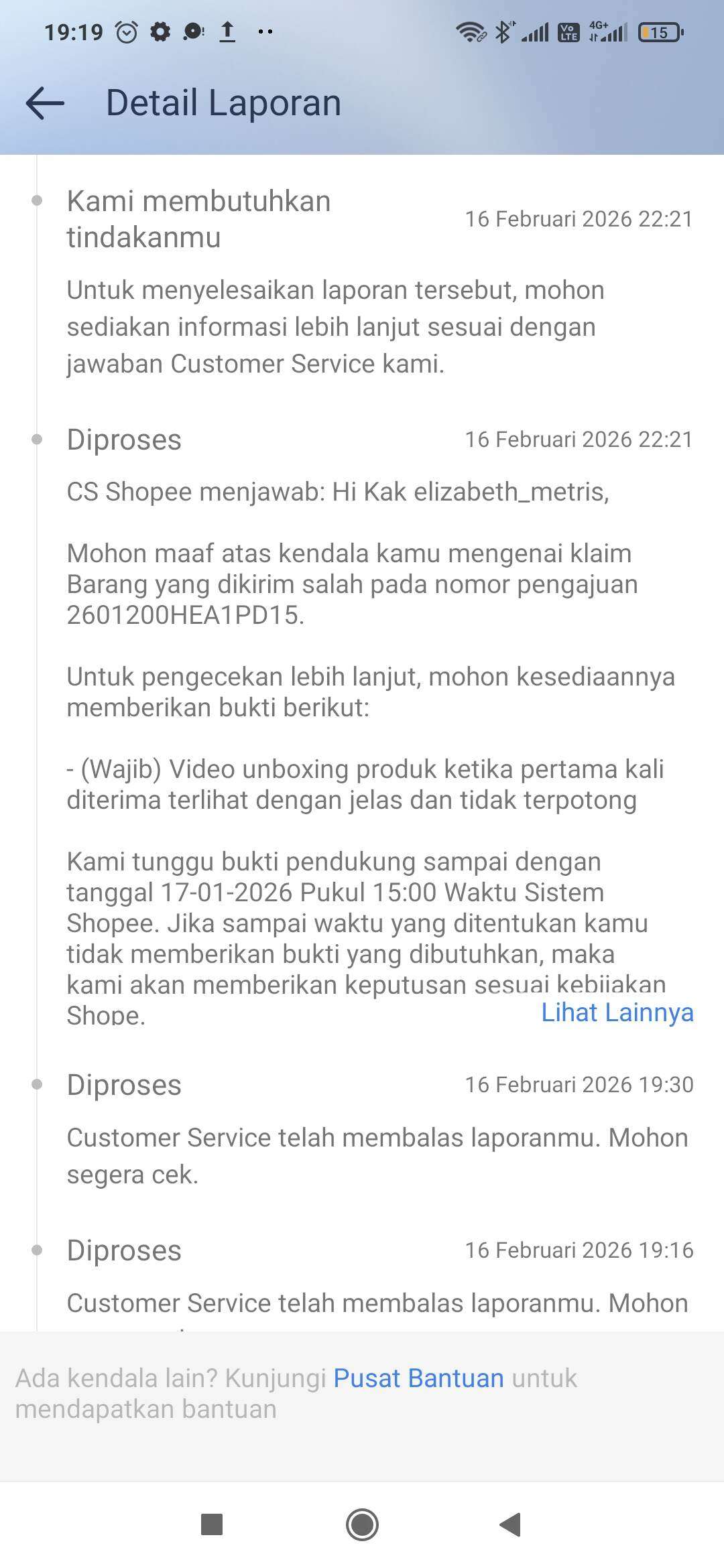 Setelah proses panjang dan beberapa kali saya tanyakan ke admin Shopee bagaimana progres banding dan klaim saya, pada tanggal 16 Februari 2026 pukul 22.21 admin Shopee mengirimkan permintaan video unboxing produk pengembalian pertama kali diterima.