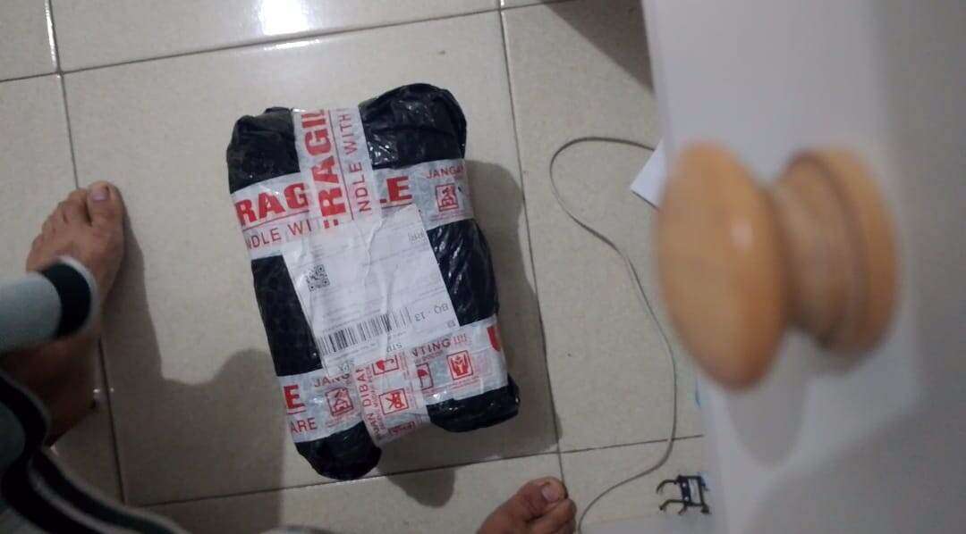 Kurir memfoto paket pengembalian fokus ke resi dengan posisi paket didirikan, resi menghadap ke atas. Sedangkan kami memvideo paket saat unboxing dengan memosisikan barang terlentang di bawah dengan maksud agar seluruh paket dan sisinya terlihat secara keseluruhan.