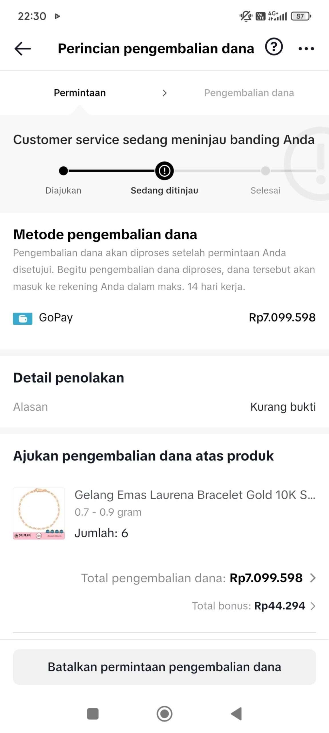 Saya mengajukan kembali permohonan pengembalian dana karena nominalnya sangat besar, yaitu sekitar Rp7 jutaan, bukan uang yang kecil.
