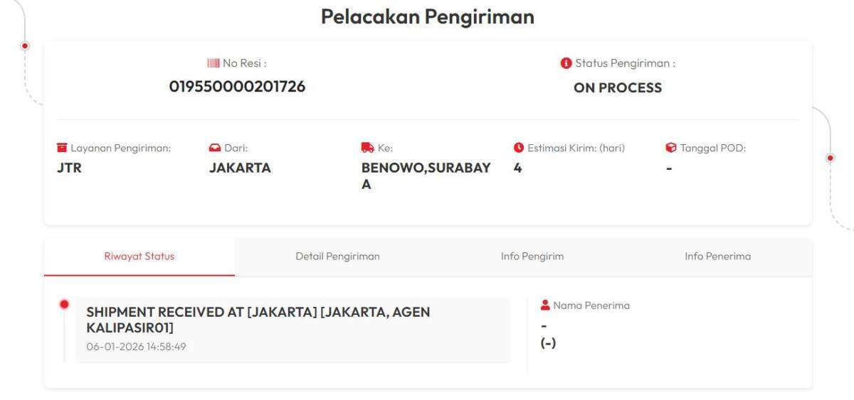 Laporan pertama saya buat pada 15 Januari 2026. Sejak saat itu, CS JNE menyatakan paket tidak terlacak, saya terus didorong untuk mengajukan klaim. Ketika menanyakan nilai ganti rugi, pihak JNE menyatakan hanya dapat mengganti sebesar 10 kali ongkos kirim karena pengiriman tidak diasuransikan, yang nilainya sangat jauh dari harga barang yang hilang.