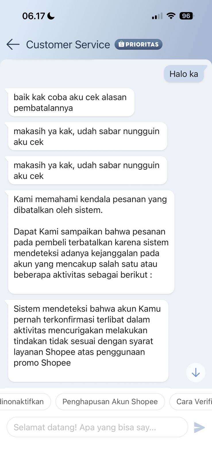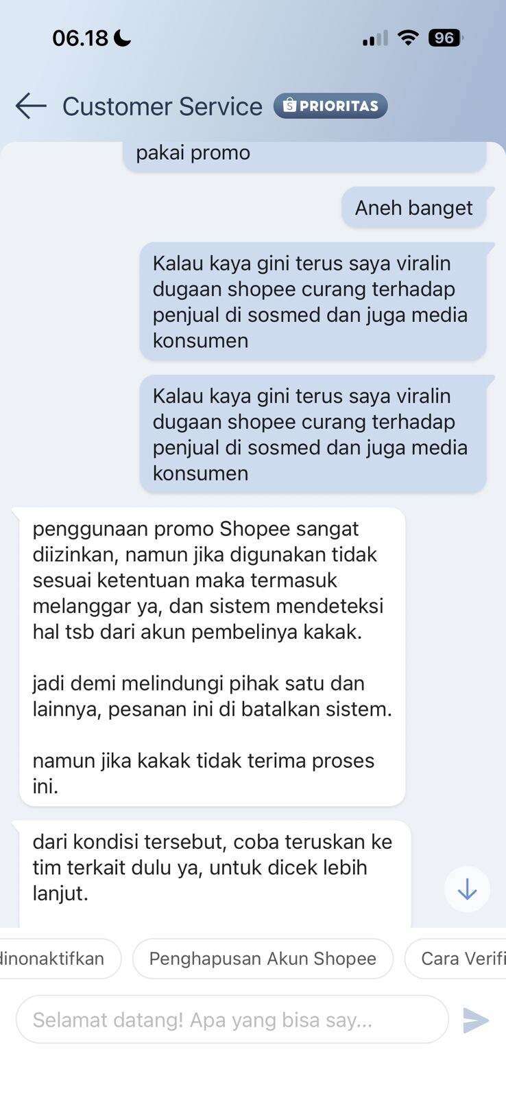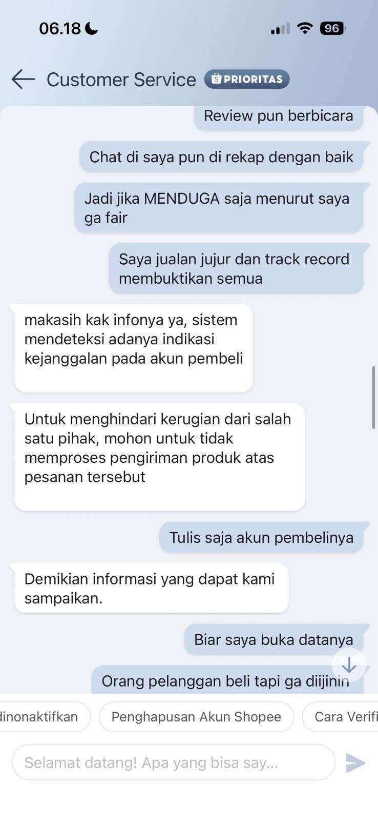 Sangat aneh perlakuan dari pihak Shopee terhadap seller dengan melakukan tuduhan sepihak tanpa mendengar penjelasan dari seller.