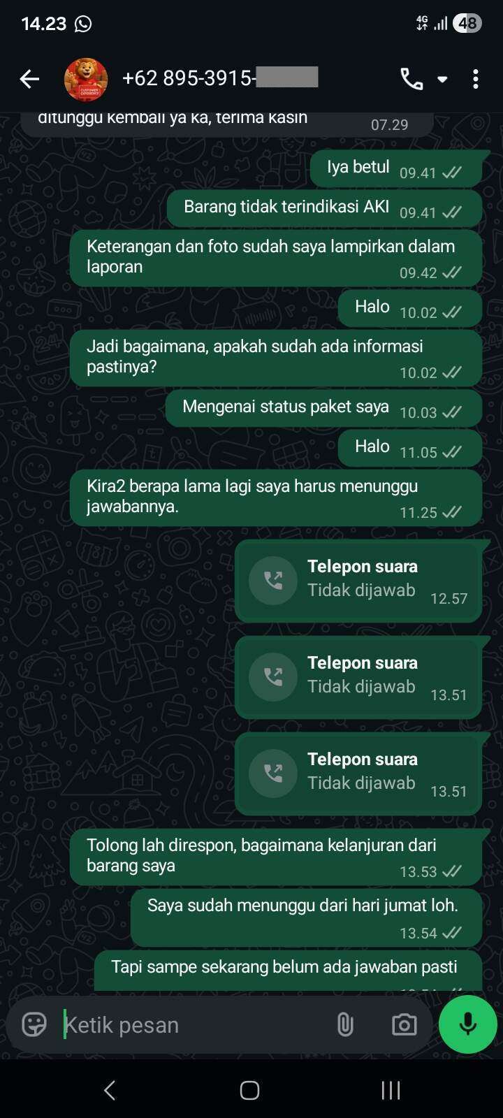 Tolonglah, jika ada kendala masalah paket, hubungilah pihak pengirim. Kalian kan jasa layanan, tetapi kenapa seperti mengabaikan hal yang paling dasar.