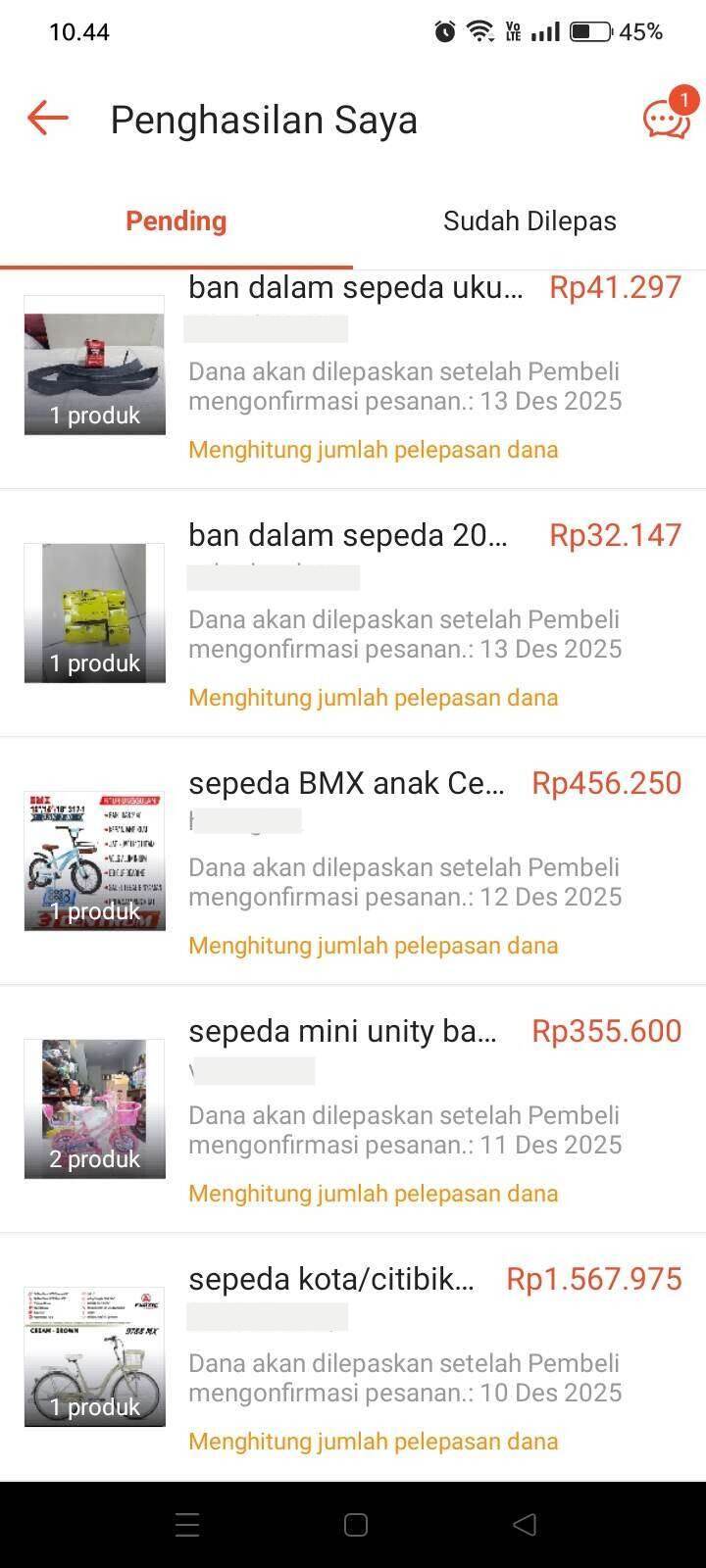 Hingga surat ini saya buat, belum ada satu pun transaksi saya yang dicairkan ke saldo penjualan saya, kecuali yang tanggal 1 Desember 2025.