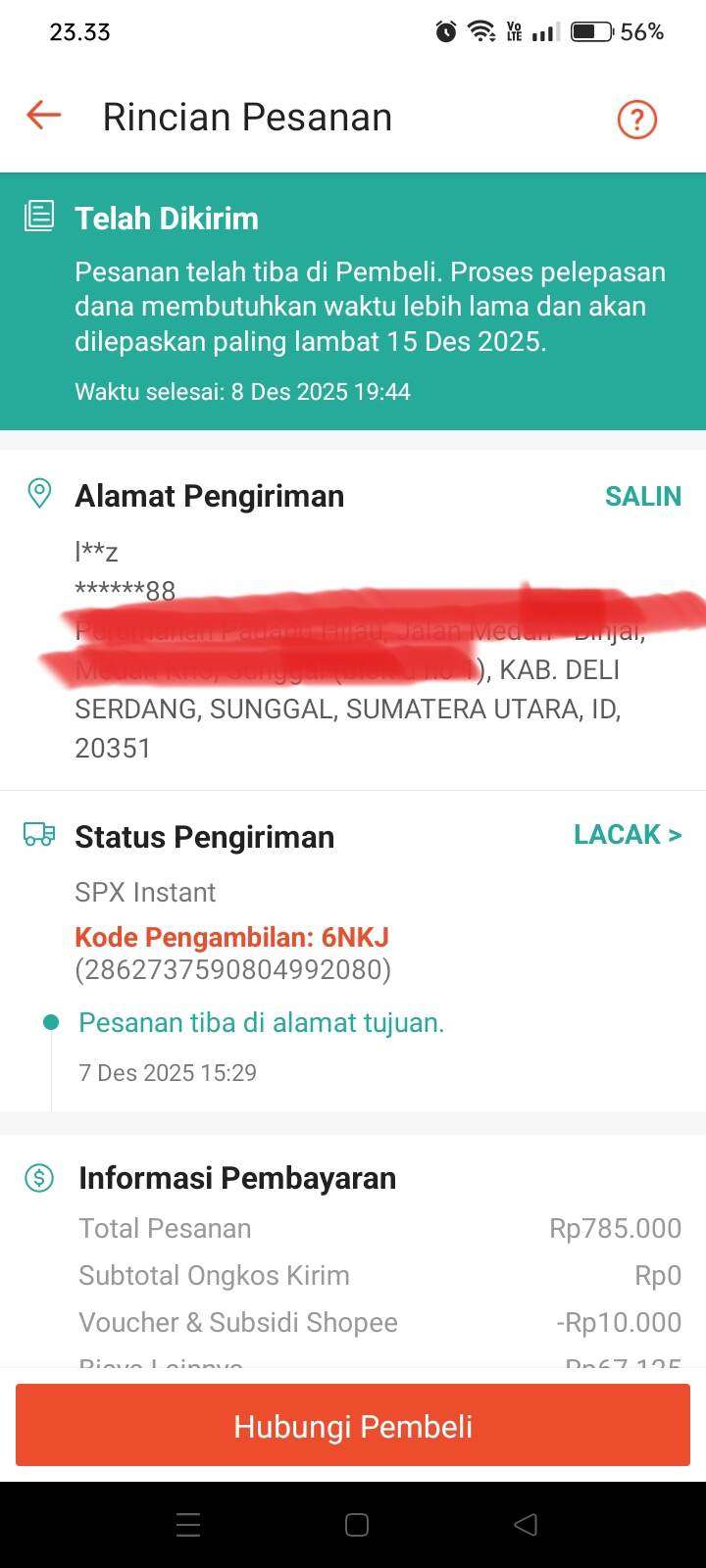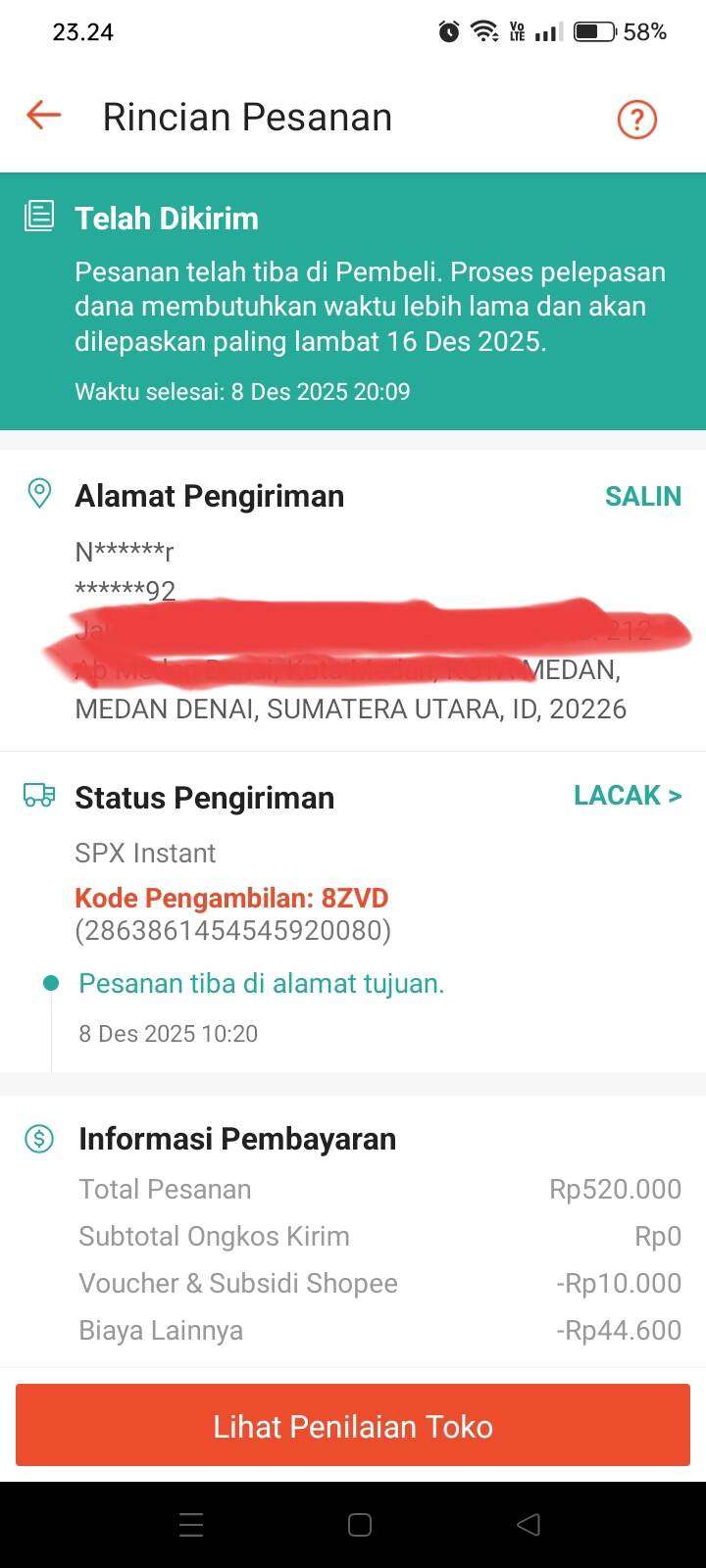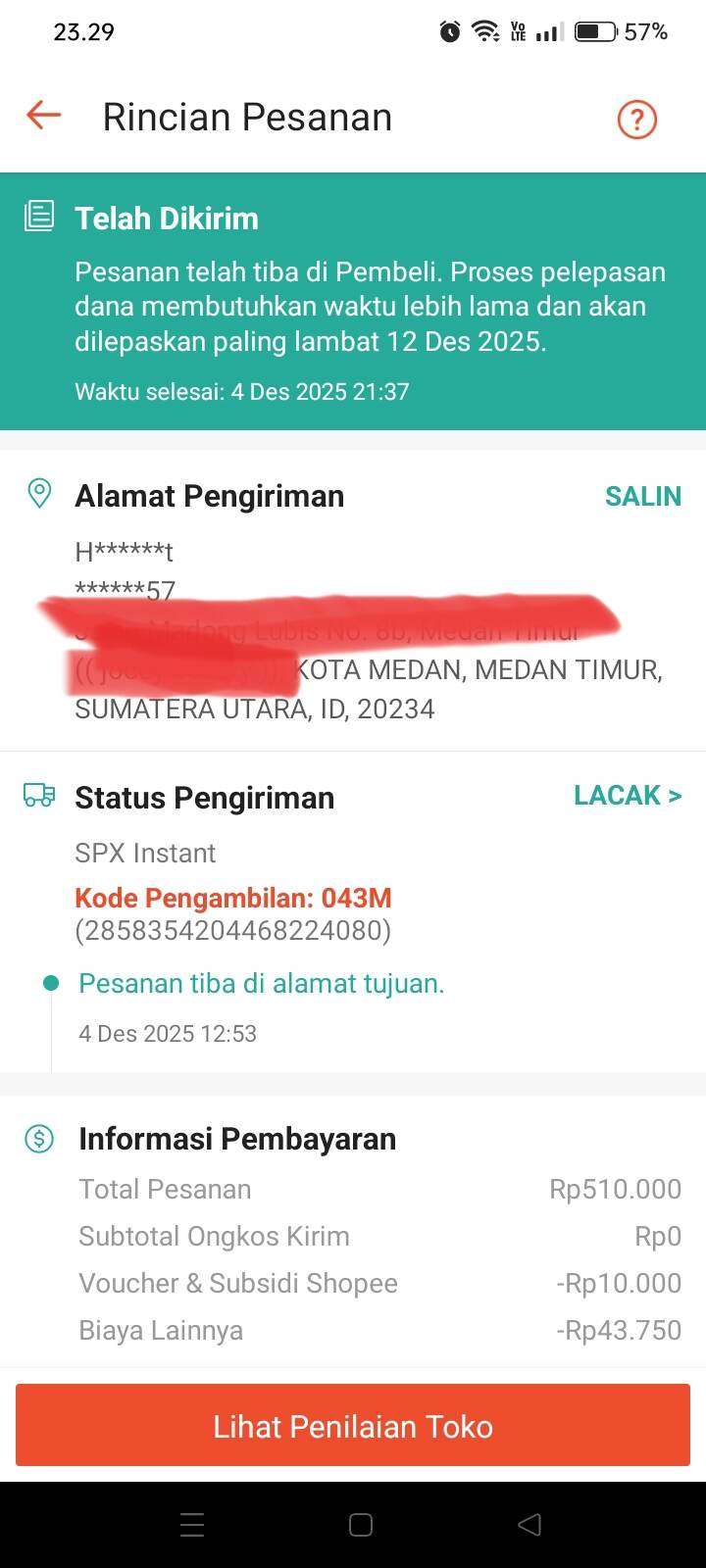 Bukan hanya satu pesanan, tetapi ada beberapa pesanan saya yang pembeli sudah mengklik selesai dan memberikan rating, tetapi ada 6 pesanan yang mengalami masalah, yaitu: