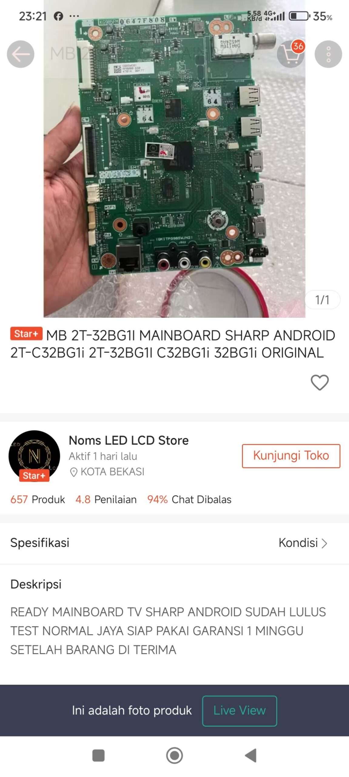 Pada tanggal 15 November 2025, saya melakukan pemesanan mainboard TV LED Sharp 2T-32BG1i di Shopee, dengan nomor pesanan: 251115T2KWM0U1, total biaya pesanan adalah Rp534.495. Saya menggunakan kurir SPX instan dengan nomor resi: 2831863609854976713.