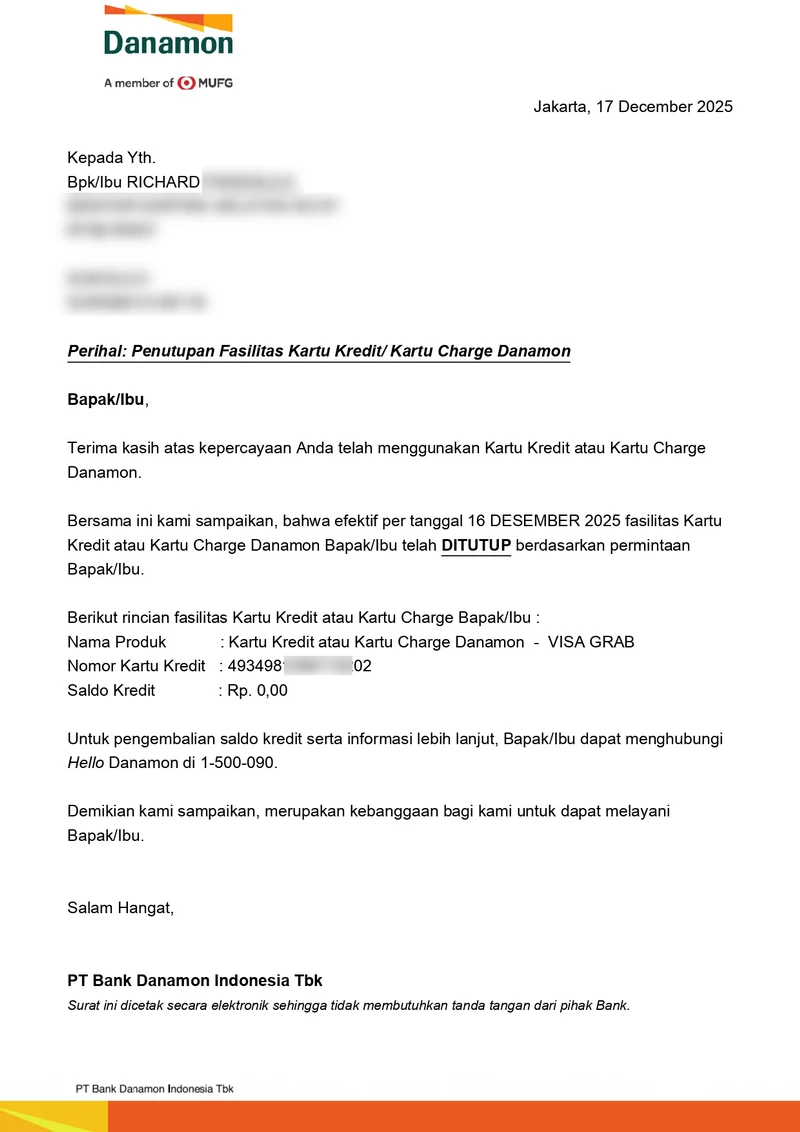 Update (22 Desember 2025): Surat pembaca di atas kembali mendapat tanggapan dari pihak Bank Danamon sebagai berikut: