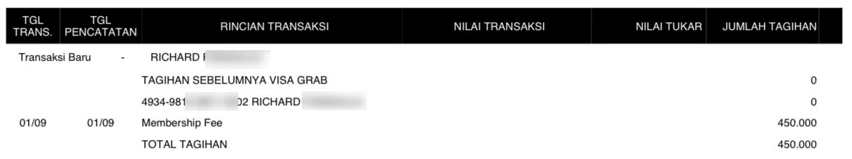 Saya memiliki kartu kredit Danamon JCB dan Visa Grab yang dikenakan biaya iuran tahunan. Nomor kartu saya: