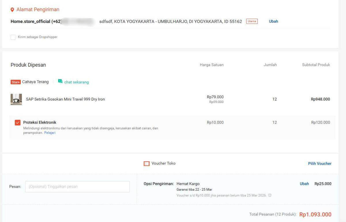 Lalu saya menanyakan perhitungan pergantian tersebut kepada CS Shopee karena perhitungan tidak sesuai. CS menyatakan sudah sesuai dengan bukti screenshot input alamat konsumen lalu perhitungan opsi pengiriman Hemat Kargo (Rp25.000). Padahal saya cek pembeli transaksi menggunakan SPX Hemat.