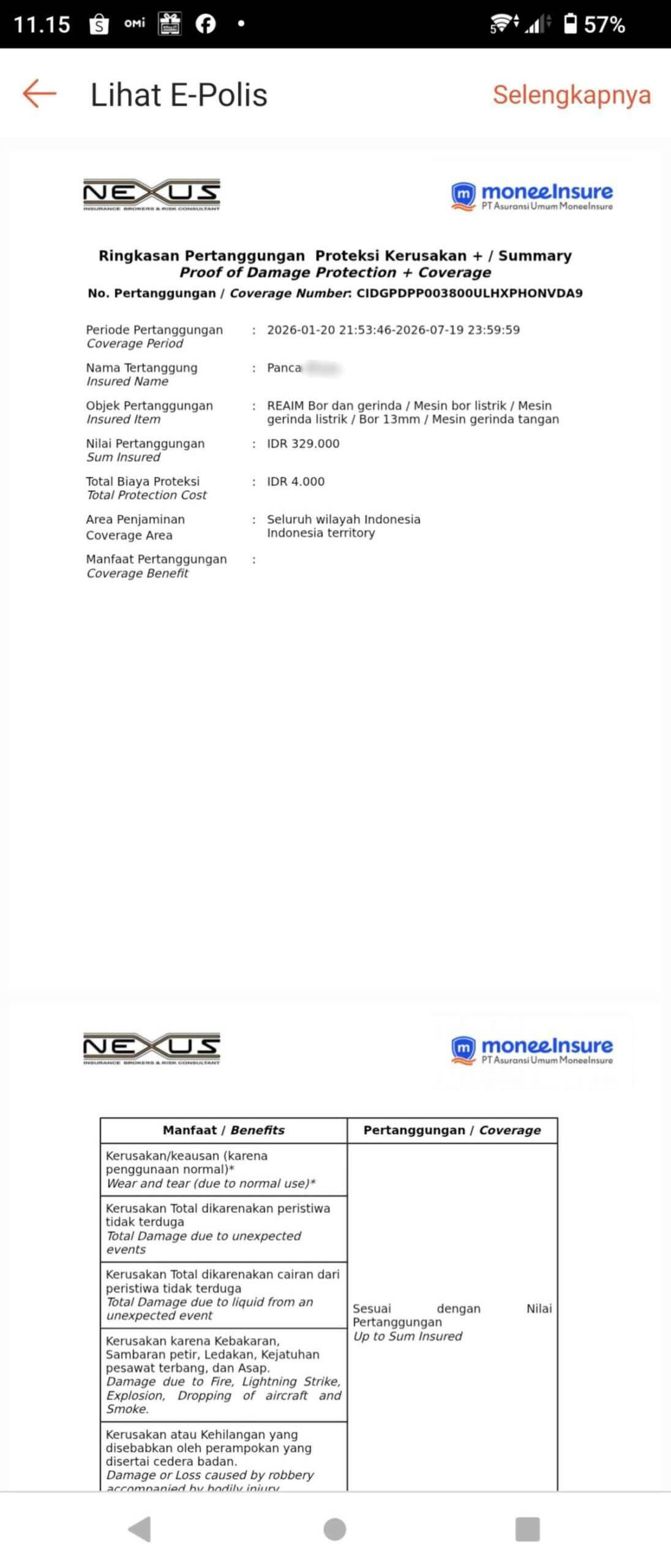 Setiap pembelian atau pembelanjaan di marketplace Shopee biasanya secara otomatis tercentang pembelian asuransi perlindungan barang yang dibeli (jika barang baru). Namun ketika saya membeli sebuah peralatan elektronik senilai 300 ribuan berupa alat gerinda (REAIM Bor dan gerinda), klaim asuransi ditolak oleh pihak asuransi.