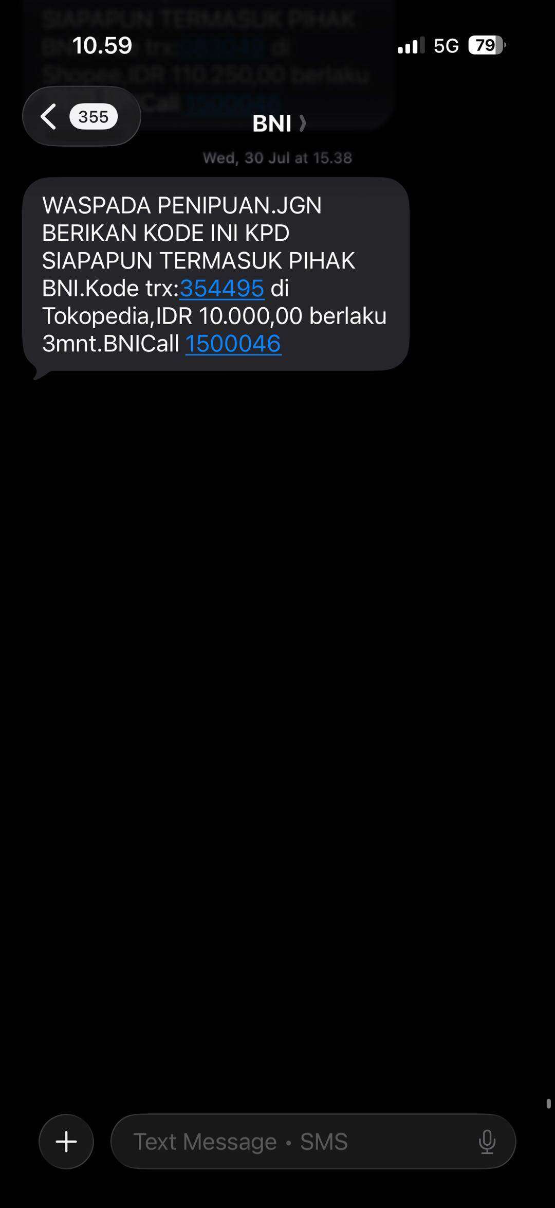 Kemudian, pada tanggal 23 Juli 2025, saya menerima OTP dari BNI atas transaksi di Tokopedia, yang mana transaksi tersebut tidak saya lakukan. Pada hari yang sama, saya langsung menghubungi customer service BNI, dan pihak BNI menyarankan untuk menonaktifkan transaksi di internet atau e-commerce.