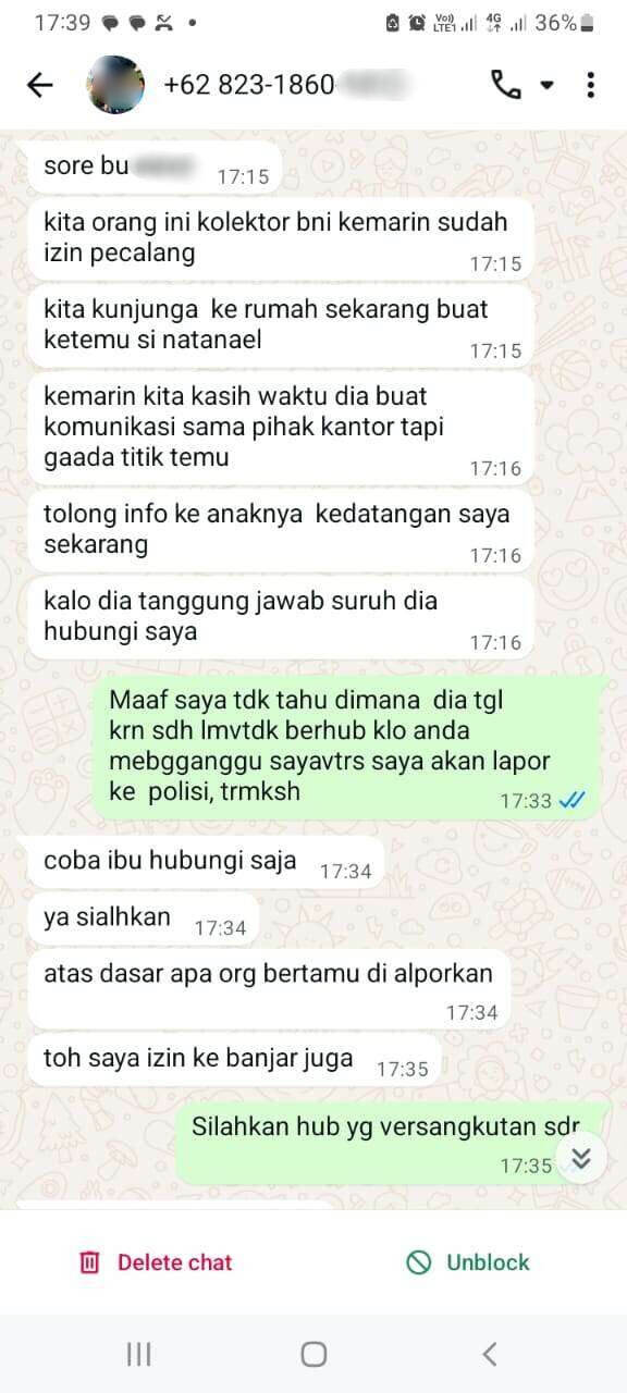 Segala bukti ancaman dan percakapan saya dengan pihak BNI akan saya sertakan di bawah ini.