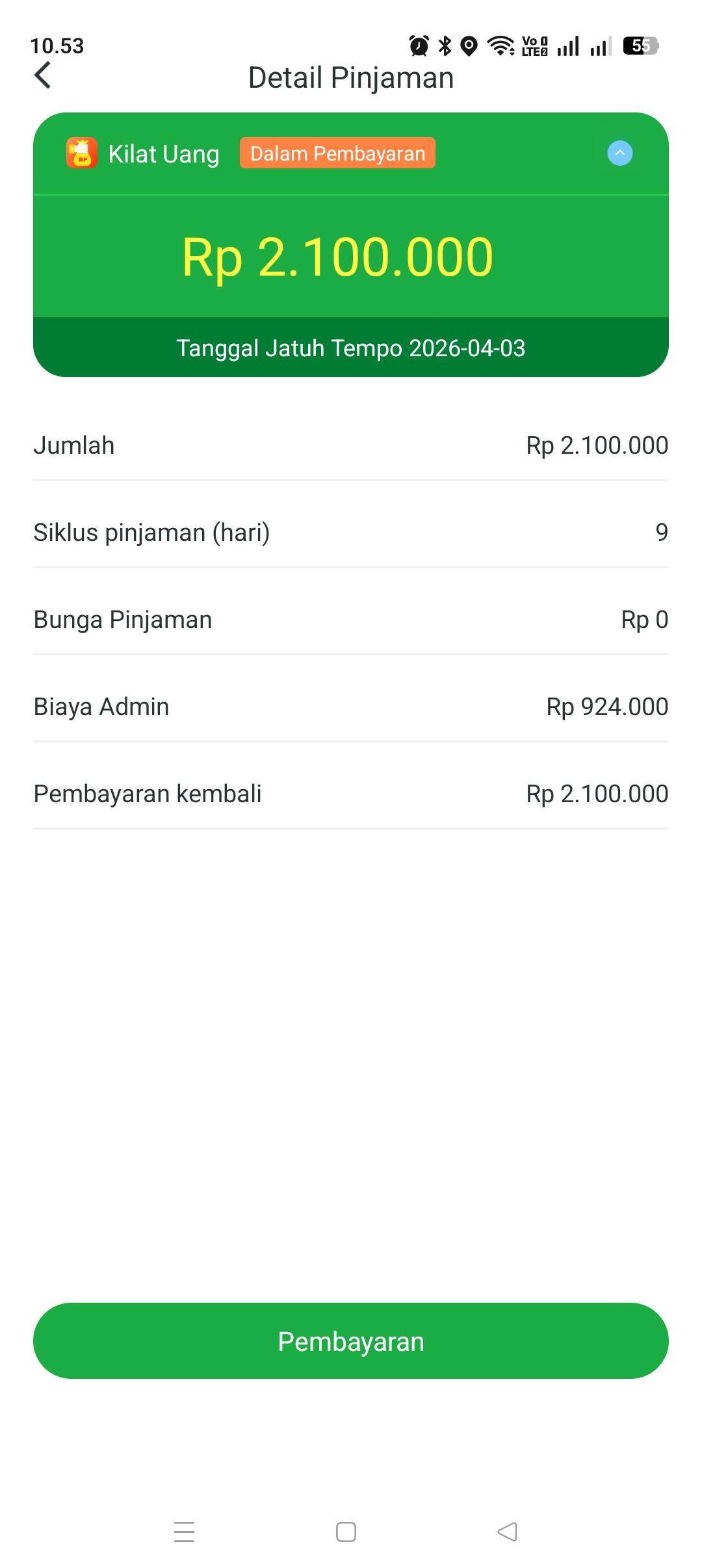 Tanpa mendapatkan keterangan apa pun seperti tanggal jatuh tempo, bunga, dan biaya admin yang harus dibayar, tiba-tiba saya mendapat persetujuan dan dana langsung ditransfer ke rekening saya, yang ketika saya lihat limit total Rp4.200.000, namun pengembalian menjadi Rp6.048.000 (bunga berkedok biaya admin sebesar 70%) dengan jatuh tempo hanya 9 hari. Jujur ini namanya perampokan dan tidak sesuai dengan aturan OJK.