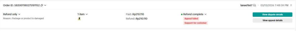 Dalam proses dispute (banding), kami sudah mengajukan bukti berupa foto-foto pendukung. Kami tidak bisa mengirimkan video karena sistem dispute TikTok hanya mendukung format JPG, sehingga kami hanya bisa melampirkan potongan foto saja. Namun sekali lagi, hasil dispute memenangkan pembeli — pembeli mendapatkan barang secara gratis sekaligus uang kembali, sementara kami sebagai seller harus mengajukan banding atas keputusan TikTok lagi tanpa kejelasan.