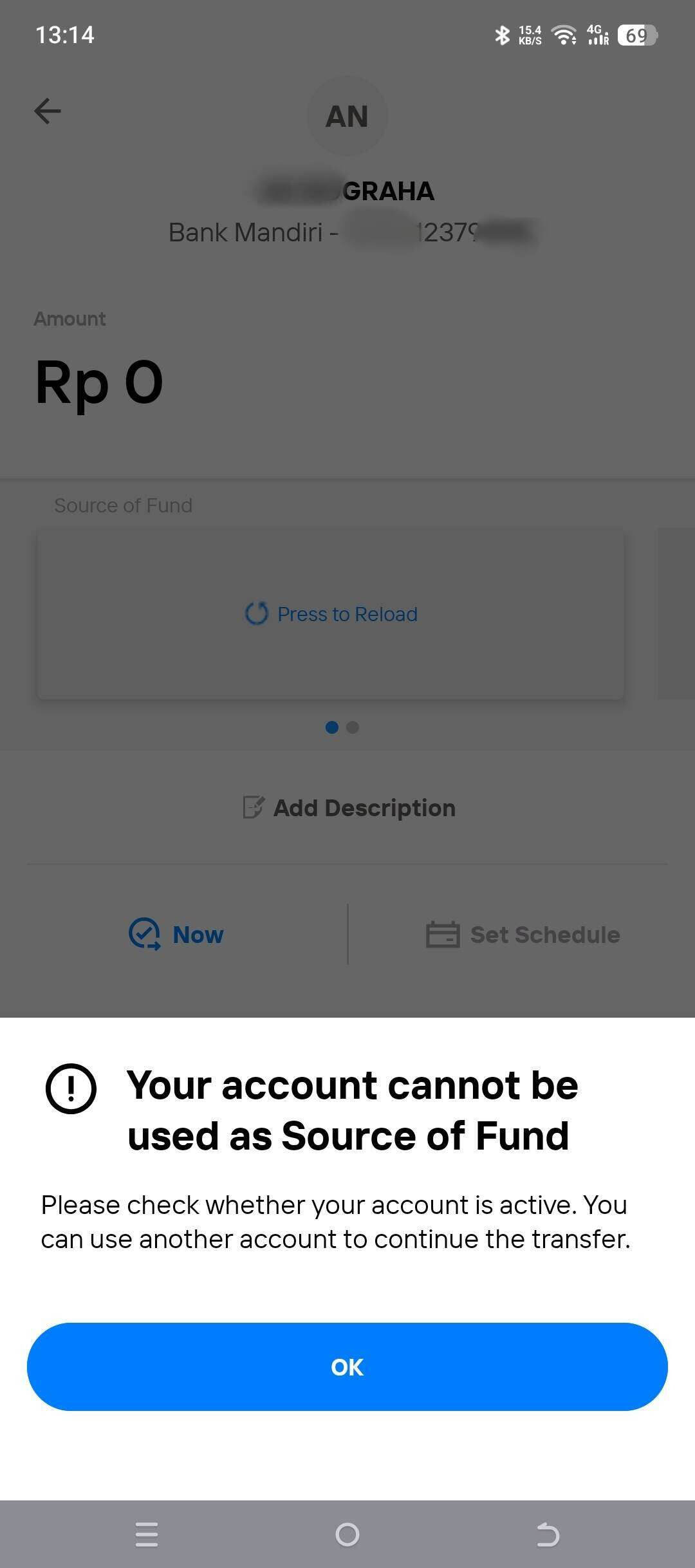 Saya dapat login ke aplikasi Livin, namun tidak dapat melakukan transaksi, termasuk transfer uang.