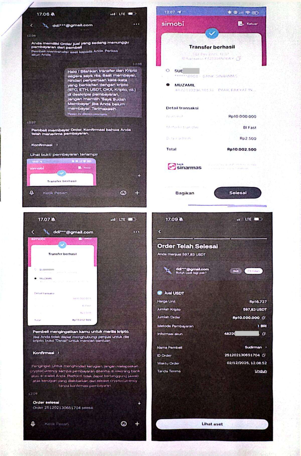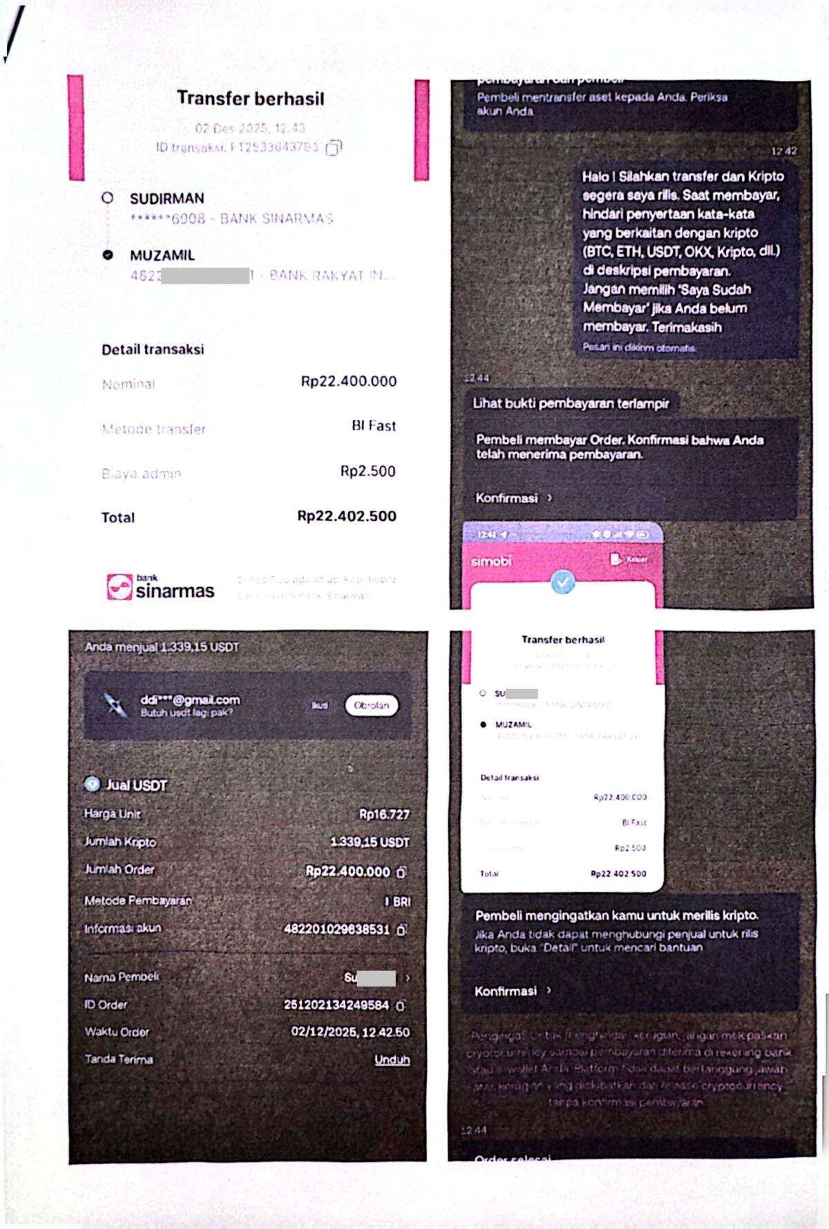 Selain itu, saya juga telah melengkapi seluruh dokumen yang diminta oleh pihak bank, termasuk surat pernyataan dan klarifikasi, foto KTP, buku tabungan, serta berbagai bukti pendukung lainnya berupa riwayat transaksi lengkap dari awal order hingga selesai.