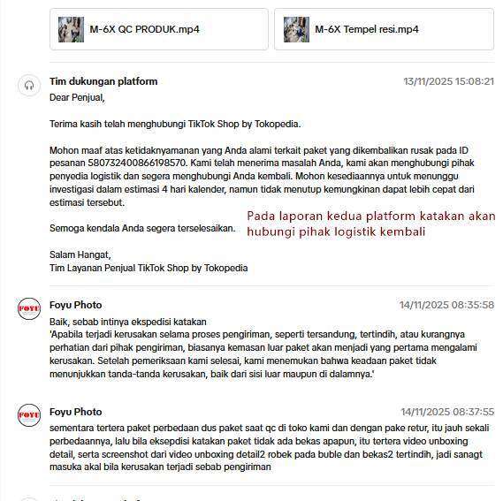 Kami sertakan bukti lebih lengkap berupa foto perbandingan kondisi sebelum dikirim dan setelah diretur. Hasil akhirnya tetap sama: ditolak dengan alasan “paket tidak rusak”.