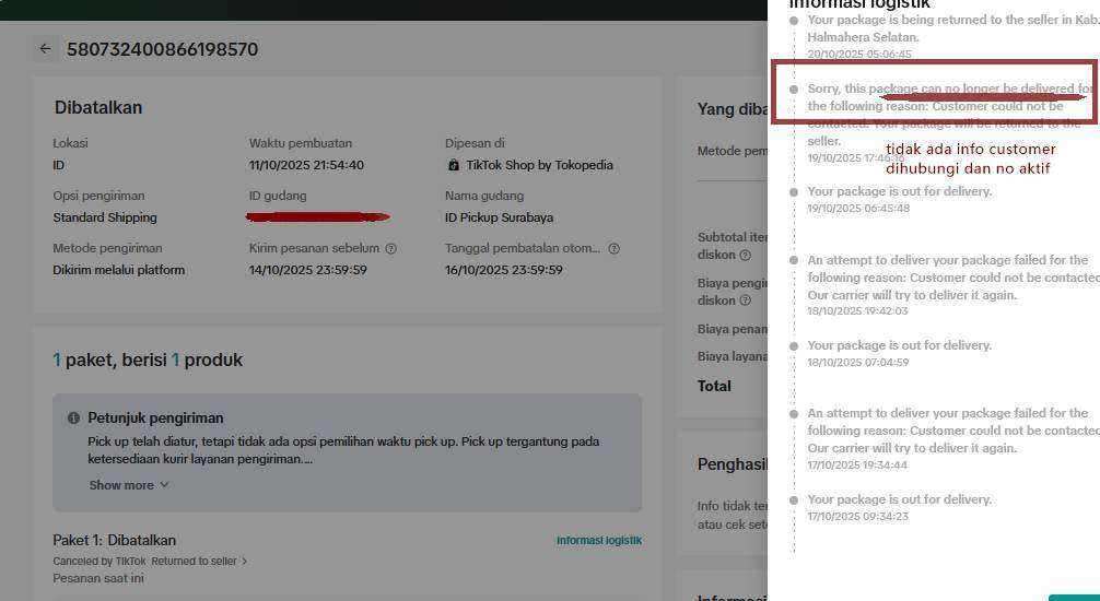 Kami adalah penjual di Tiktok Shop by Tokopedia yang selalu menjaga kualitas pengiriman barang kepada pelanggan. Namun baru-baru ini kami mengalami kerugian, akibat paket yang diretur karena pengiriman gagal oleh J&T Express. Padahal paket sudah kami kemas dengan aman sesuai standar.