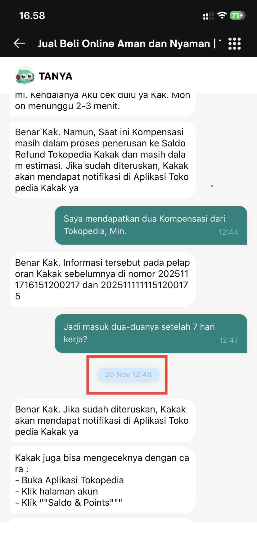 Salah Satu Saldo Kompensasi Telah Melewati Batas SLA, Tokopedia Tidak Menepati Janji