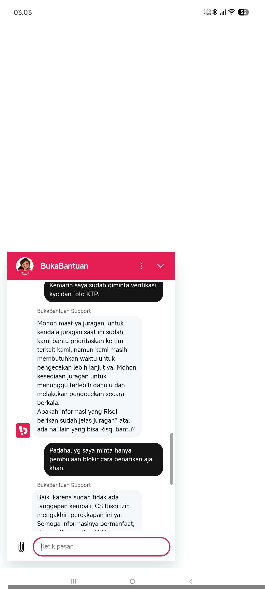 Saya sudah banyak diterima oleh customer service dan bahkan beberapa kali percakapan diputus secara sepihak, meskipun saya belum menyatakan bahwa saya sudah puas. Kejadian ini terjadi bukan hanya sekali, tetapi tiga kali.