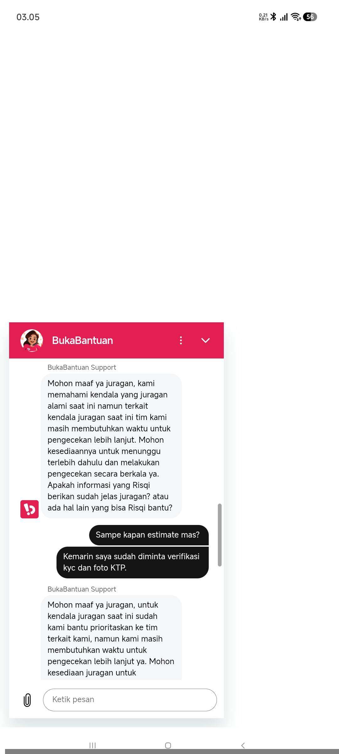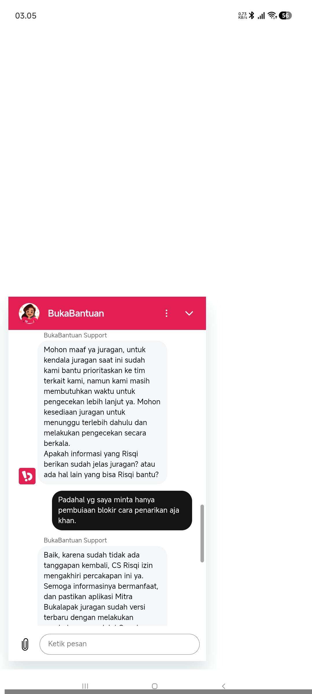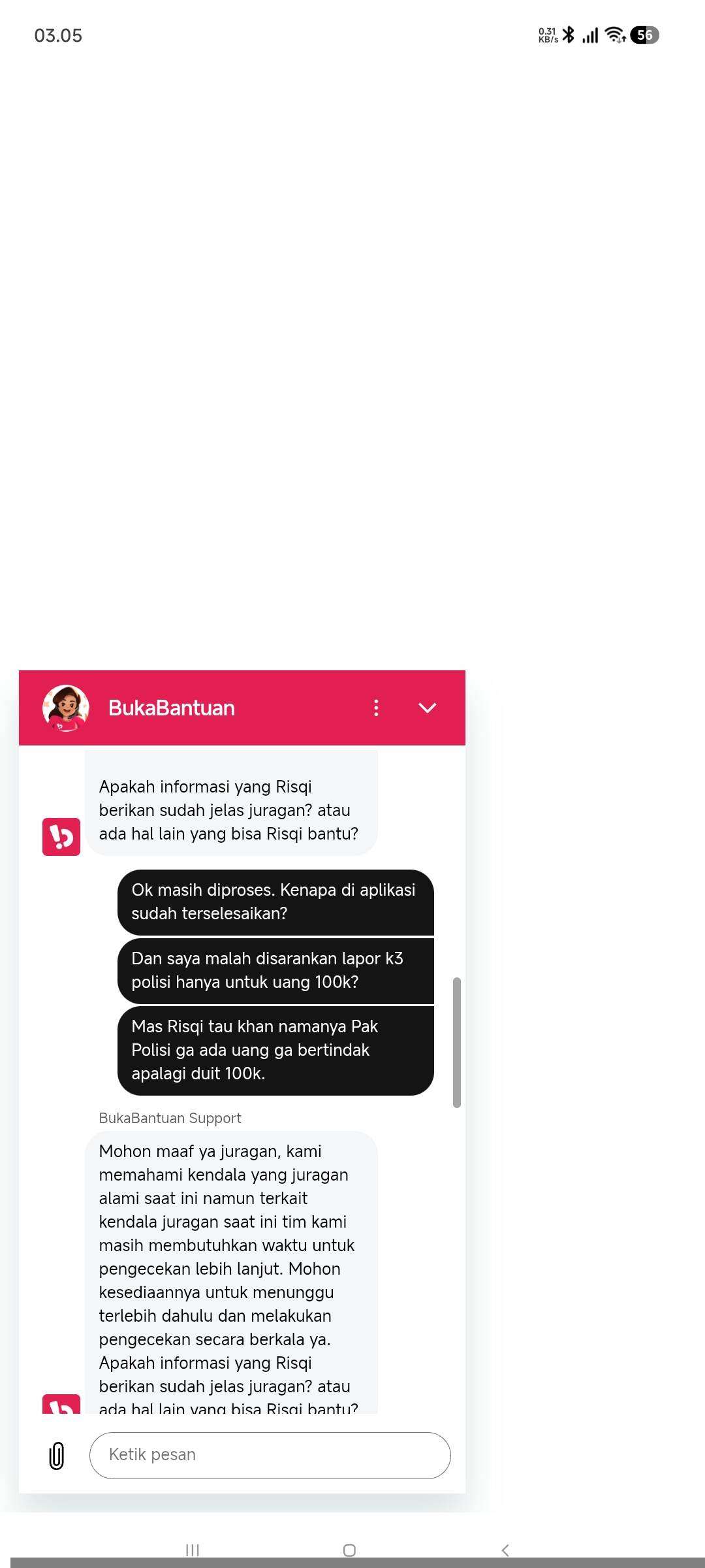 Apakah seperti ini SOP penanganan permasalahan di client BukaLapak? Bahkan saya juga diinstruksikan untuk melapor ke polisi.