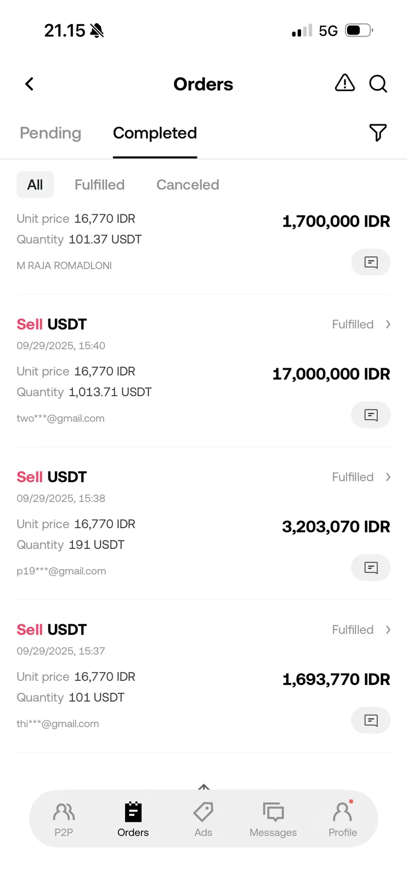 Rekening BRI saya digunakan untuk transaksi jual beli USDT. Saya menjual USDT melalui P2P, dan berikut ini saya sertakan bukti bahwa saya adalah merchant yang terverifikasi.