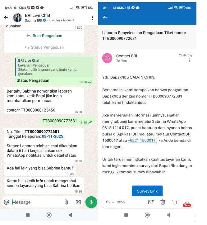 Hingga saat ini, belum ada pernyataan resmi dari Bank BRI terkait kepastian penyelesaian masalah, tindak lanjut yang telah dilakukan, ataupun informasi mengenai kompensasi bagi pengguna yang terdampak. Saya yakin apabila Bank BRI mampu menjaga komunikasi yang baik dengan nasabah, maka nasabah pun akan turut mendukung BRI dalam menyelesaikan masalah yang sudah terjadi hampir satu bulan.