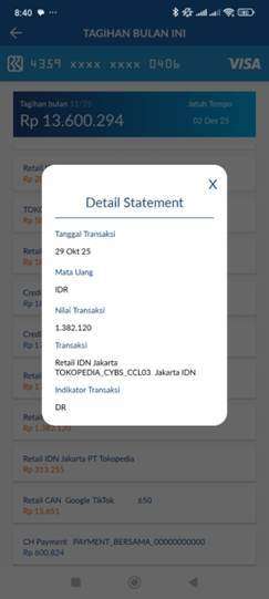 Pada tanggal 17 November, tagihan saya sudah keluar, di mana tagihan yang seharusnya terkonversi menjadi cicilan justru ditagihkan secara penuh, seperti pada gambar berikut:
