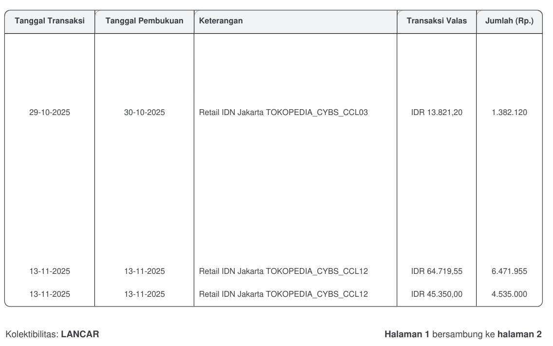 Di gambar tersebut terlihat bahwa saya memiliki 3 transaksi yang seharusnya terkonversi menjadi cicilan, namun tetap ditagihkan secara penuh: