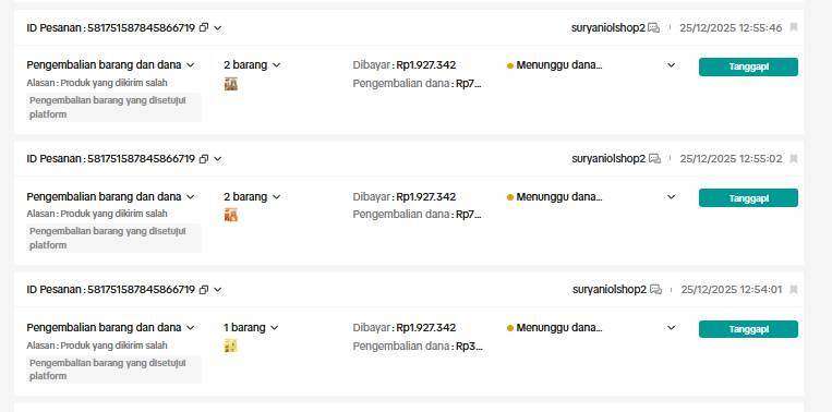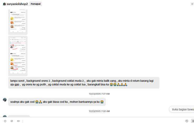 Setelah barang diterima, pembeli kemudian mengajukan pengembalian dengan alasan “produk yang dikirim salah”. Hal ini bertentangan dengan pernyataan pembeli sebelumnya yang mengakui bahwa kesalahan terjadi karena kekeliruan saat melakukan checkout quantity.