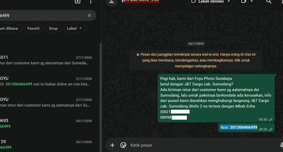 Permasalahan tidak berhenti di situ. Ketika paket retur sampai kembali kepada kami, kondisi barang sudah dalam keadaan rusak. Paket tersebut dikirim menggunakan J&T Cargo dengan nomor resi retur: 201306466499. Bukti kondisi paket telah kami sampaikan secara rinci kepada pihak platform. Namun, proses banding ditutup dengan arahan agar penjual menghubungi pihak ekspedisi secara mandiri.