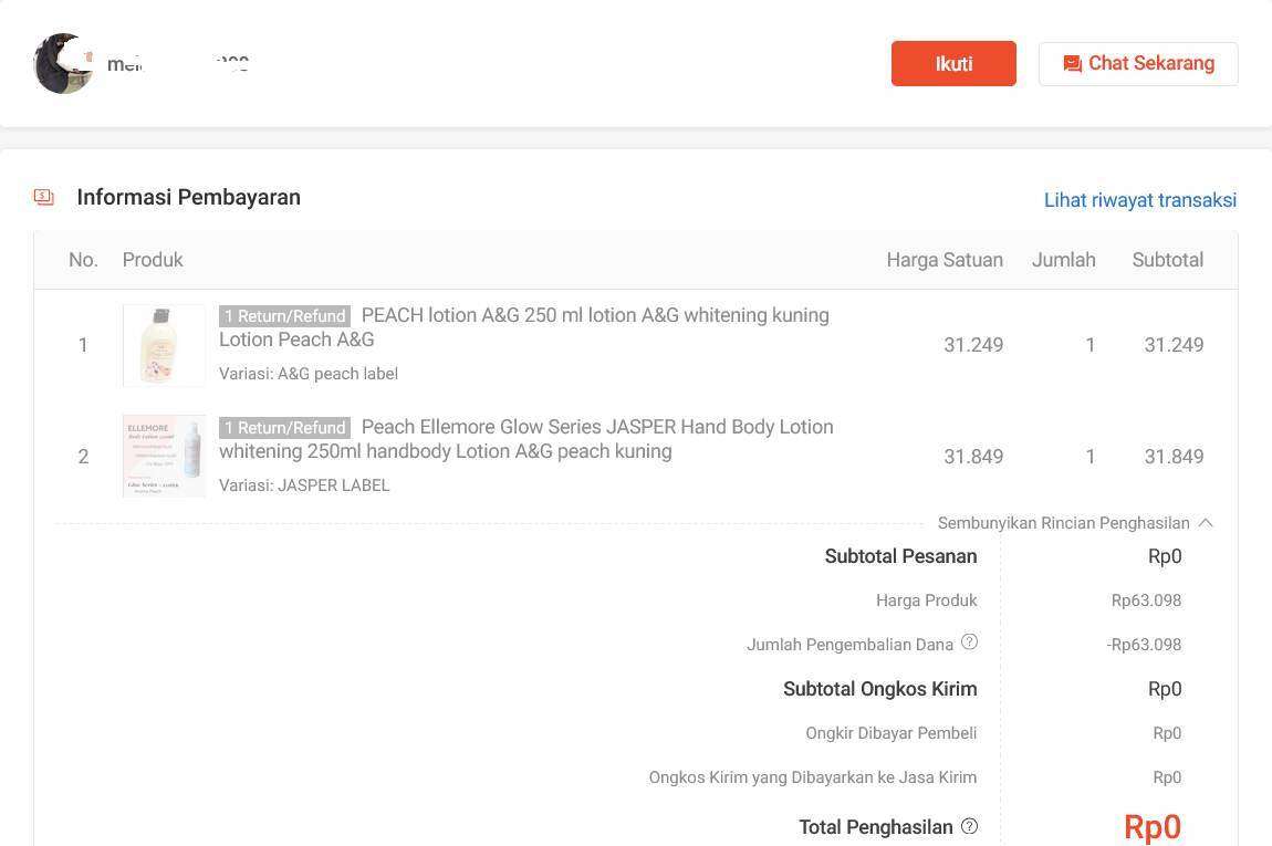 - Kenapa seenaknya sendiri CS Shopee mengembalikan dana tanpa barang saya dikembalikan ke saya? Saya sebagai seller juga merasa dirugikan, sudah kirim sesuai invoice. Dari foto tersebut hanya tutup lepas dan bisa di-retur. Kenapa buyer tidak disuruh me-retur barang tersebut baru dana dikembalikan? Apa semudah itu dapat barang gratis di Shopee? Yang lepas tutup 1, diklaim 2 barang digratiskan keduanya. Seharusnya bisa di-retur karena botol juga utuh.