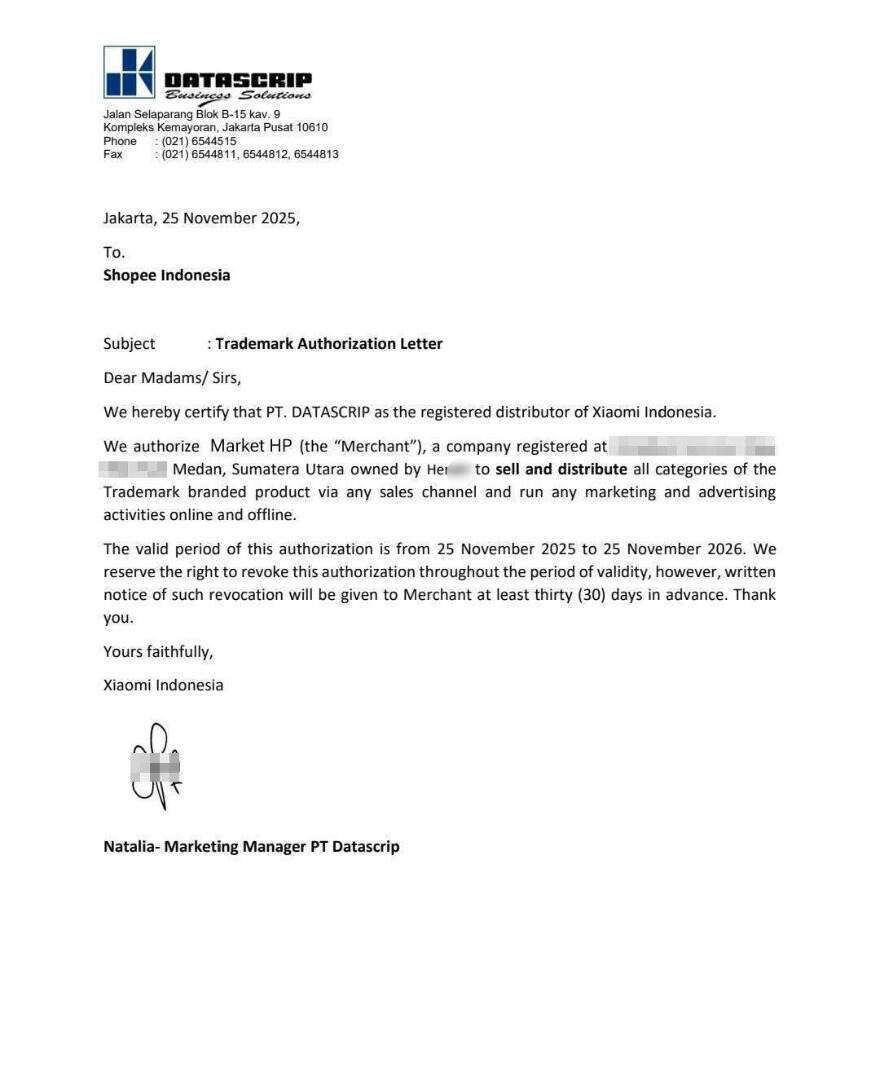 Saya selaku seller di Shopee dengan nama Market HP. Saya sudah berjualan hampir 10 tahun di Shopee, dan sebelumnya saya juga pernah mengalami hal demikian. Saat itu saya mengajukan banding dengan melampirkan surat dari distributor resmi Xiaomi Indonesia (Datascrip).