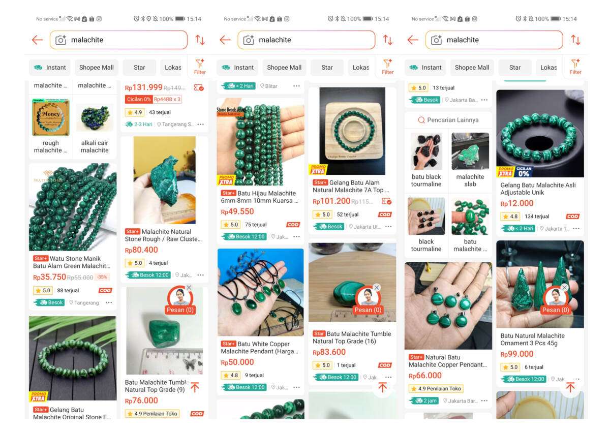 Jika Shopee melarang kategori batu alam, kenapa tidak ada pemberitahuan tertulis sebelumnya bahwa penjualan batu alam yang dianggap “Mistis” dilarang secara sepihak? Banyak seller yang menjual batu alam di Shopee, dan selama ini tidak ada yang mengalami pemblokiran produk seperti yang saya alami. Kategori “Batu Malachite” di Shopee juga memiliki ratusan produk dari berbagai seller di Indonesia.