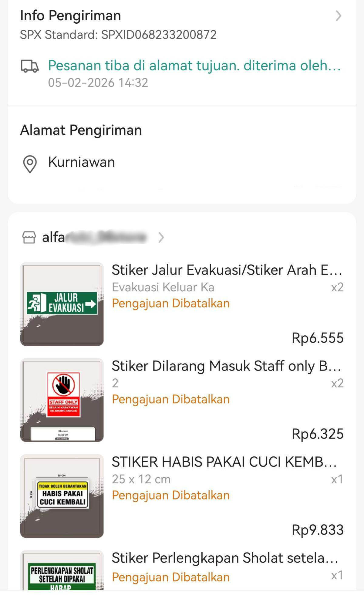 Saya ingin menyampaikan keluhan terhadap layanan Shopee terkait pengajuan pengembalian produk berupa stiker yang saya beli pada tanggal 1 Februari 2026 dengan No. Pesanan 260201JDNNMEQS.