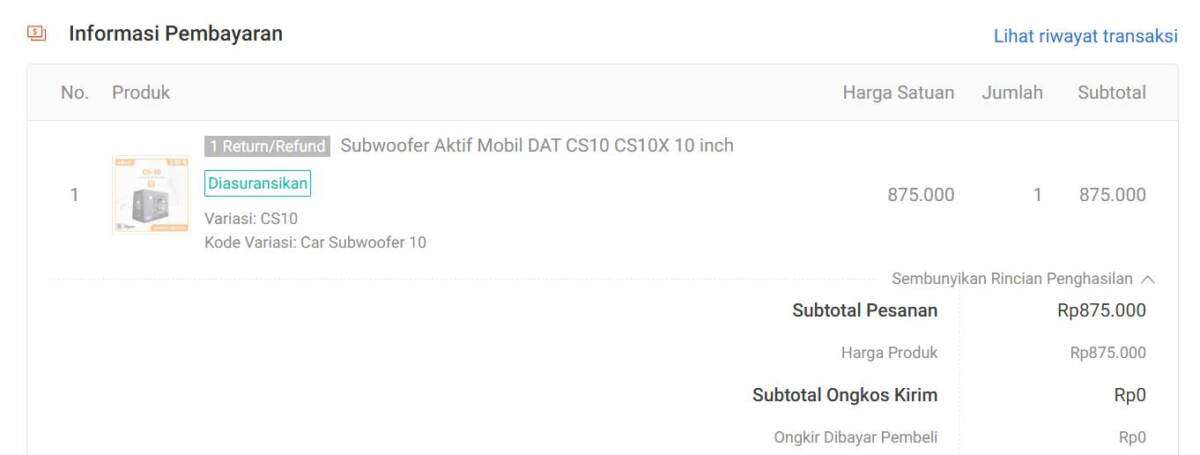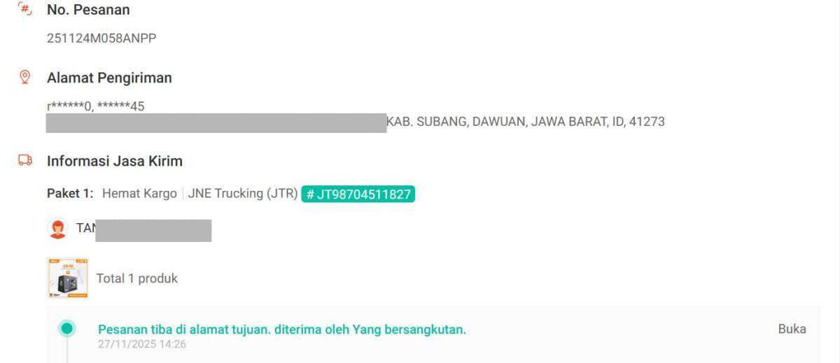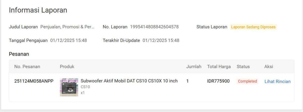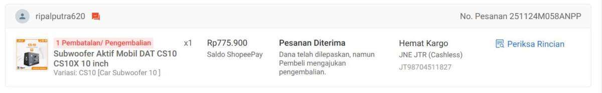 Singkat cerita, saya sebagai seller menerima pesanan (251124M058ANPP) speaker subwoofer, di link: https://shopee.co.id/product/60394911/7875393088/.
