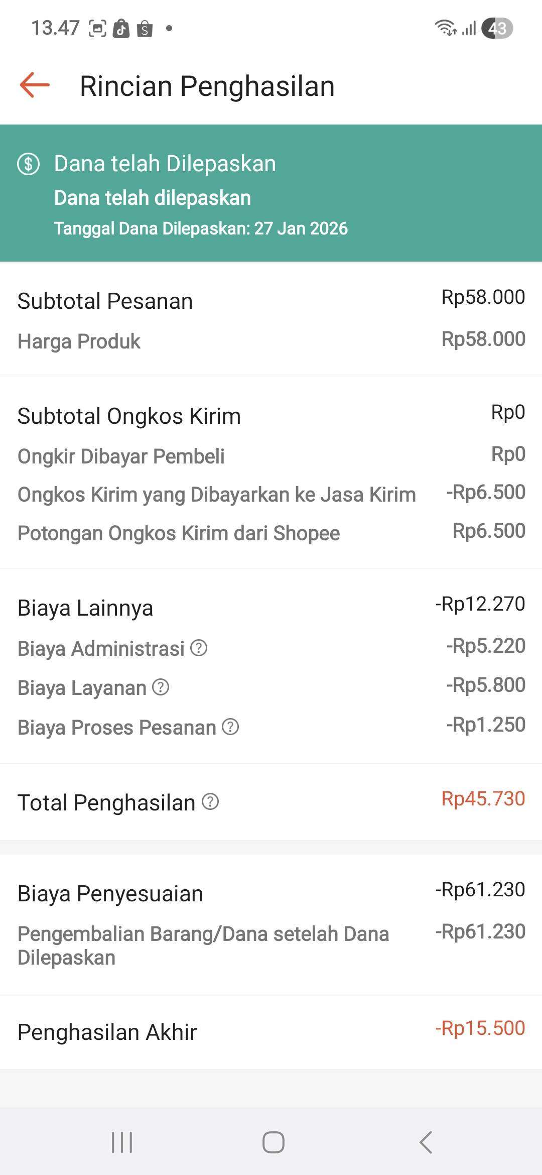 Setelah negosiasi panjang, Shopee hanya menawarkan iklan yang awalnya Rp30 ribu dinaikkan menjadi Rp58 ribu. Luar biasa, padahal kerugian saya melebihi itu. Siapa yang bertanggung jawab atas barang rusak tersebut?