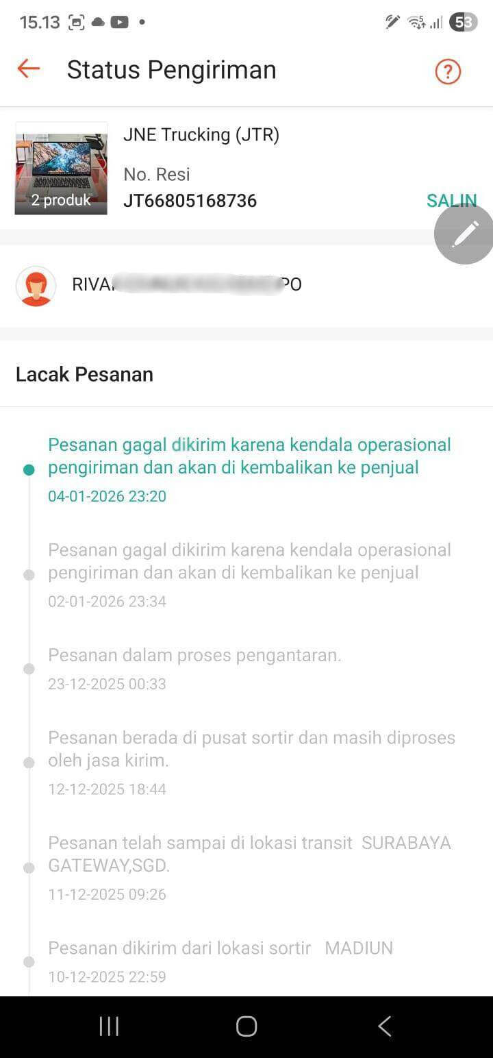 Sudah 1 Bulan Status Pengiriman Paket Laptop Saya Tidak Jelas dan Tidak Bisa Klaim Asuransi, JNE dan Shopee Tidak Bertanggung Jawab