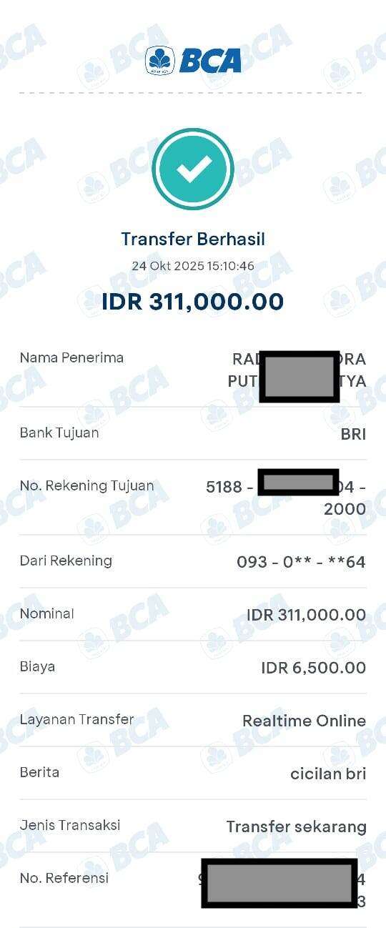 Pada bulan November 2022, saya mengikuti program cicilan (restruktur) kartu kredit dari Bank BRI. Saya membayar sesuai dengan draft yang saya terima, dengan tenor selama 3 tahun, dan cicilan terakhir jatuh pada bulan Oktober 2025.