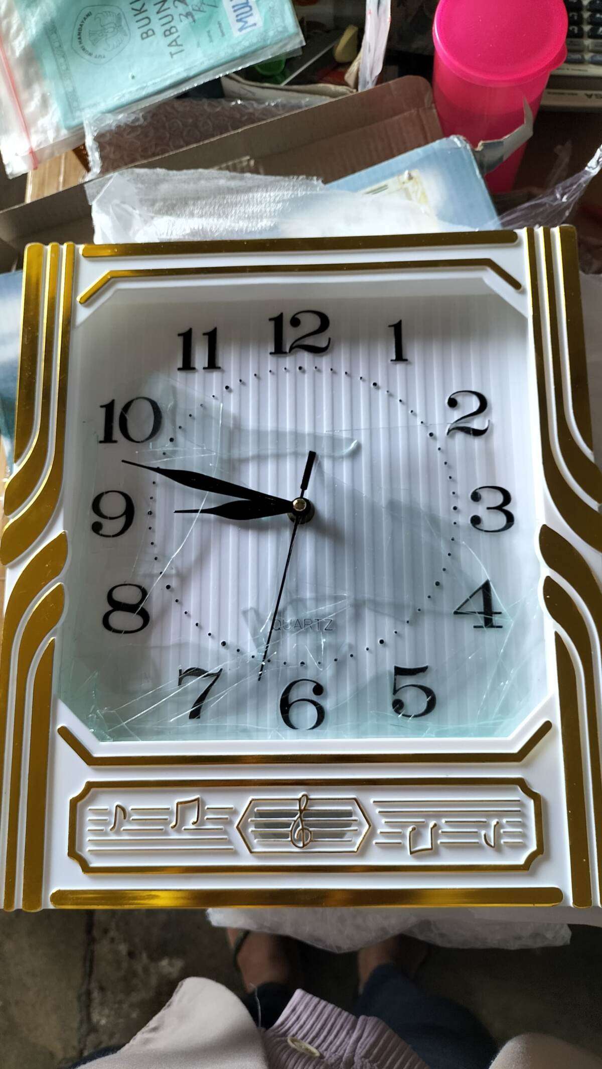Di video CCTV terlihat jelas bahwa bagian dalam barang sudah kami lapisi bubble wrap sebelum dimasukkan ke dalam boks jam. Lalu boksnya kami lapisi dengan gabus styrofoam, kemudian dilapisi lagi dengan bubble wrap sebelum dimasukkan ke dalam boks karton corrugated sebagai pengaman tambahan, disertai stiker fragile agar kurir berhati-hati dalam pengiriman.