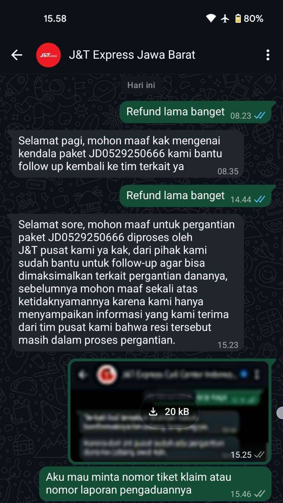 Melalui surat ini, saya menuntut itikad baik dari J&T Express untuk segera mencairkan dana ganti rugi yang merupakan hak saya. Saya berharap pihak manajemen pusat J&T dapat segera menindaklanjuti masalah ini.