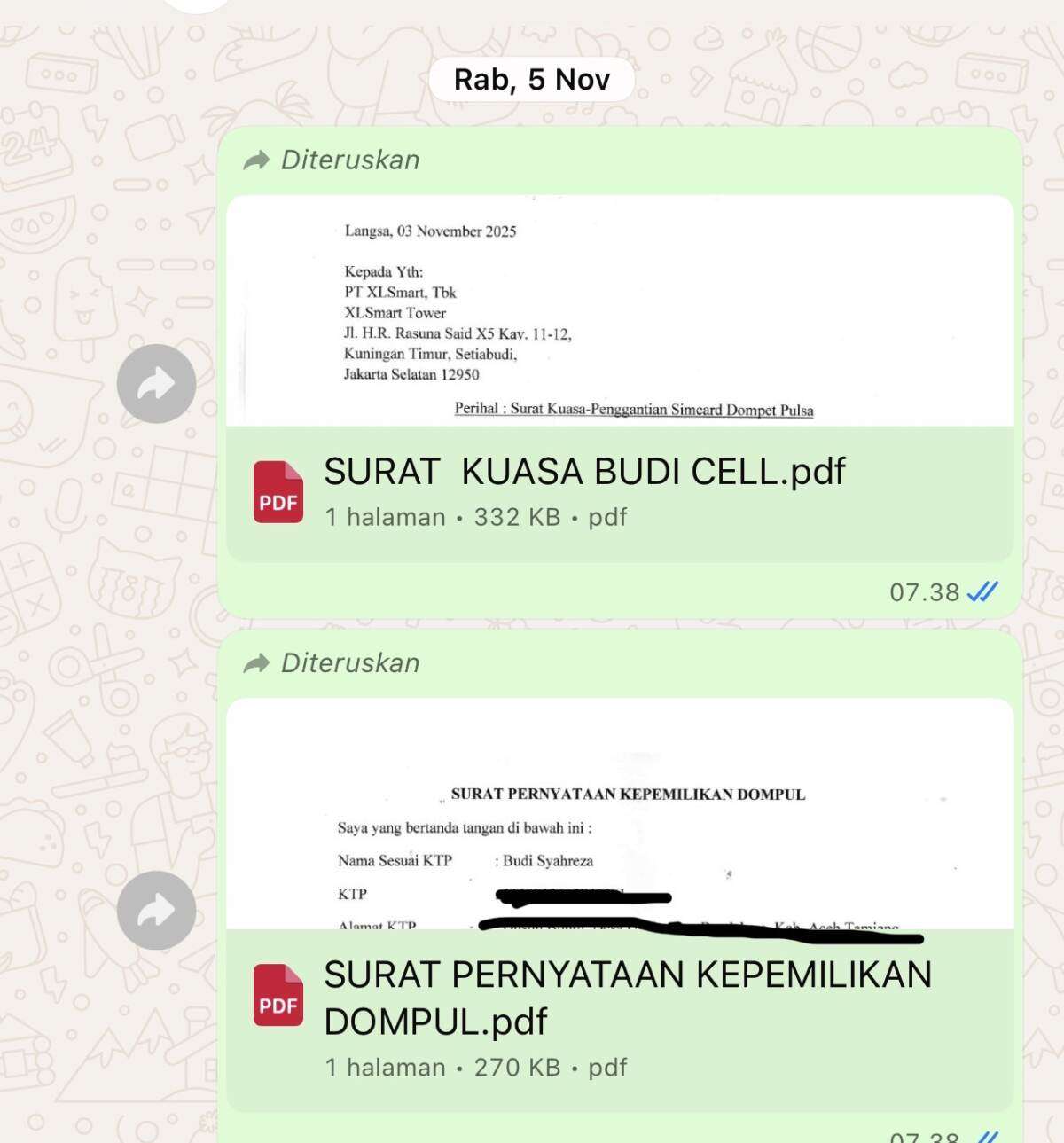 Perlu saya sampaikan bahwa pada November 2025, saya telah menyerahkan Surat IOM dan Surat Pernyataan Kepemilikan nomor XL Dompet Pulsa kepada pihak dealer, sesuai dengan arahan yang diberikan pihak XL Center Diponegoro Medan. Namun hingga kini, langkah tersebut juga belum membuahkan hasil dan tidak ada kejelasan lanjutan.