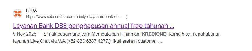 Saya mendapatkan teror dari aplikasi pinjol Kredione yang bekerja sama dengan Bank DBS. Awal ceritanya, ketika saya berbelanja di supermarket Hokky Citraland Surabaya, ada seorang sales kartu kredit Bank DBS yang menawarkan produk kartu kredit tersebut.