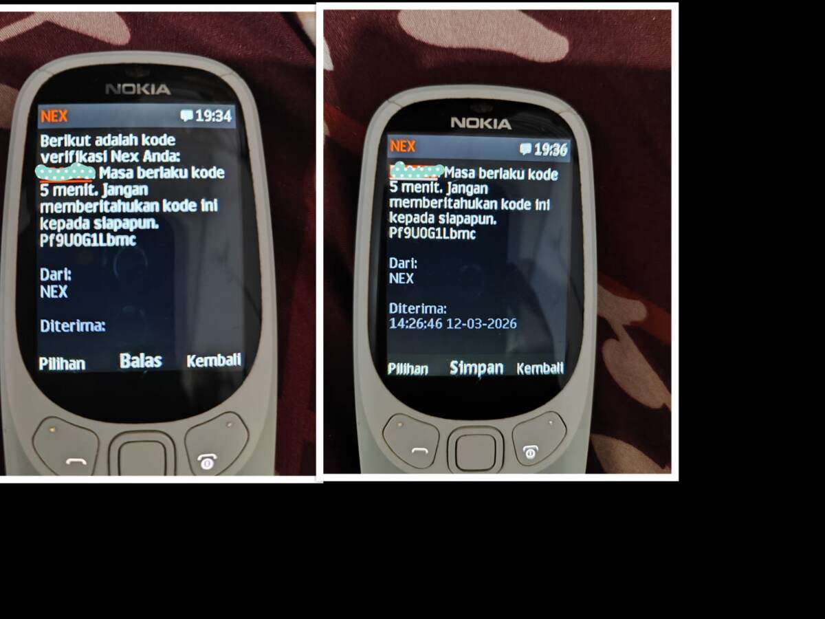 Sekitar akhir Januari 2026, saya mendapatkan email dari pihak Nex bahwa per 30 Januari 2026 akan ada pembaruan keamanan aplikasi. Karena kesibukan, akhirnya saya baru mencoba login lagi di aplikasi Nex pada 5 Maret 2026, namun OTP yang saya tunggu tidak kunjung masuk (saya menggunakan operator Tri dan mempunyai pulsa Rp43.000 lebih). Saya menggunakan nomor HP dan email yang sama untuk mendaftar di aplikasi Nex dan aplikasi Sampoerna Mobile Banking.