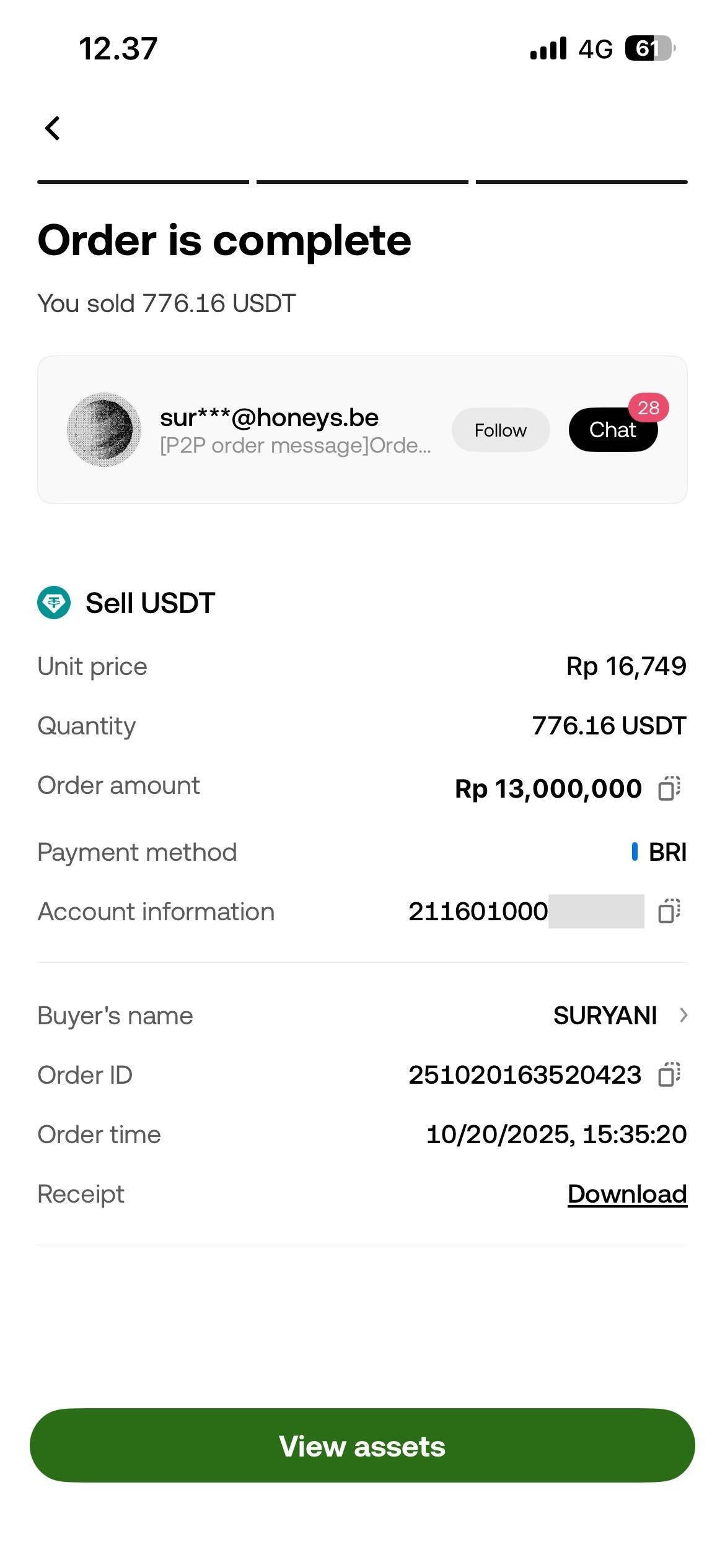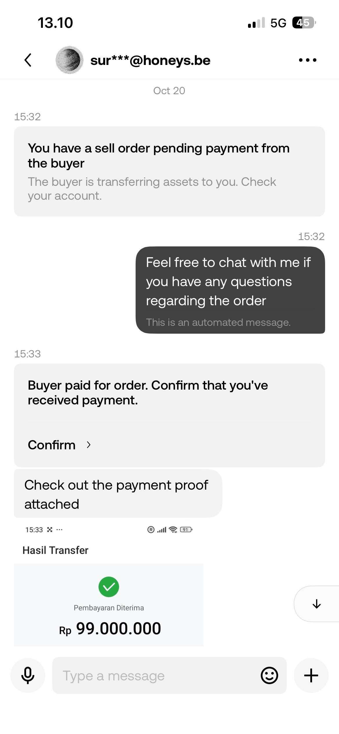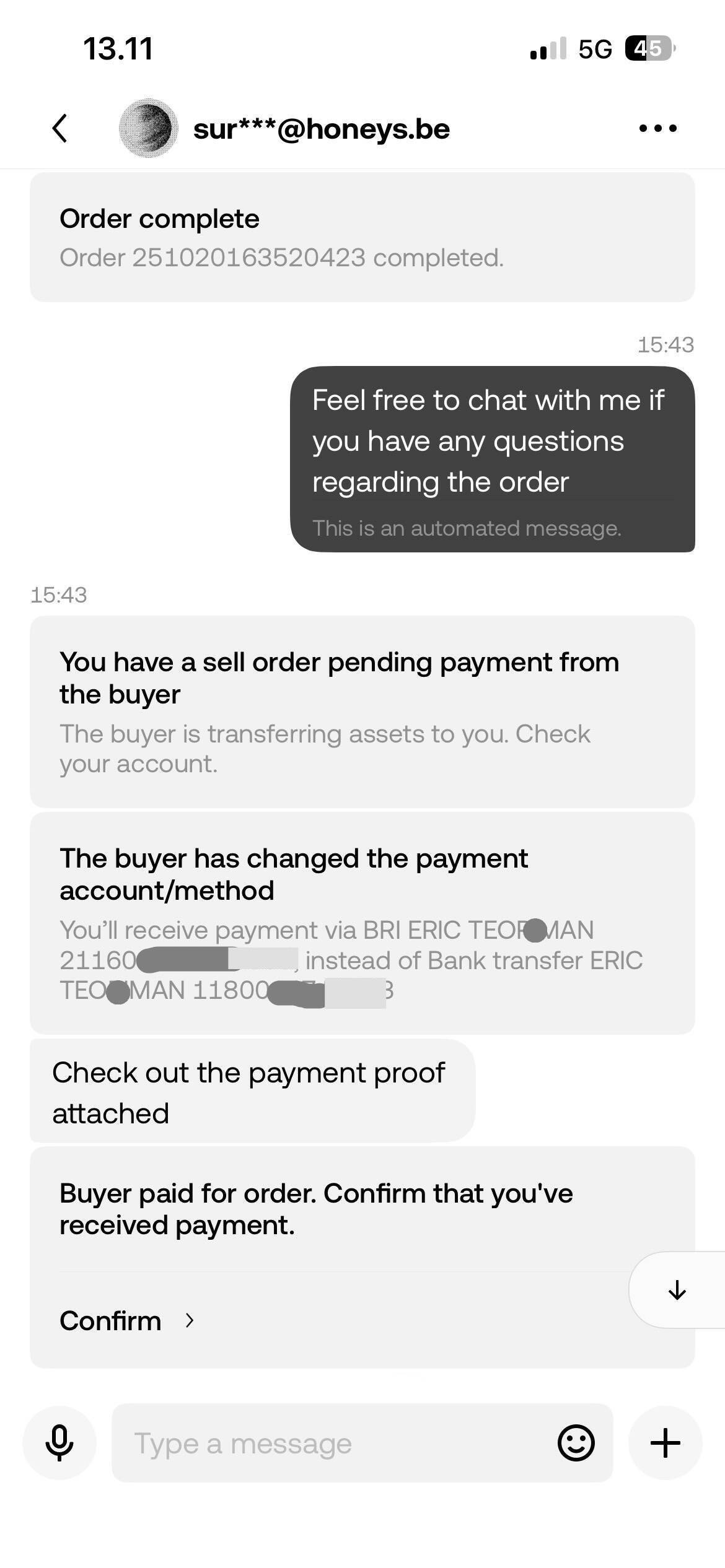 Transaksi yang dipermasalahkan adalah jual beli USDT. Saya tidak mengenal pihak pembeli secara pribadi; ia membeli USDT melalui aplikasi dan transaksi dilakukan secara online, sebagaimana sudah saya jelaskan dalam surat pernyataan kepada BRI.